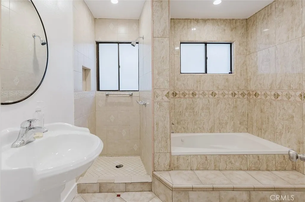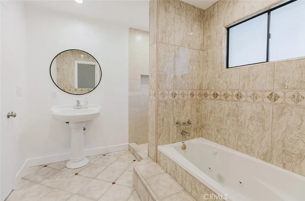 Additional upgrades include new electrical outlets and switches, central A/C, and mini-split systems in every bedroom for personalized comfort. The bedrooms offer laminate flooring and updated lighting, while one of the three bathrooms features a jacuzzi tub surrounded by elegant tilework.