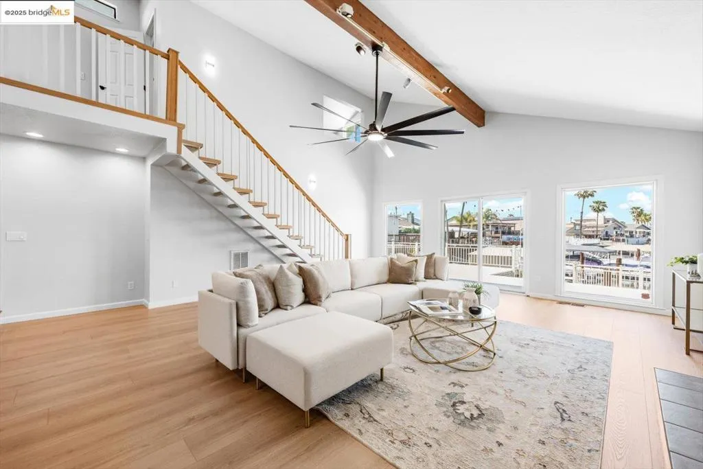 Welcome to the heart of Discovery Bay! This beautifully remodeled deep-water home offers the perfect blend of luxury, comfort, and functionality. Featuring a spacious owner’s suite on the main level with a spa-like bathroom. Enjoy the Desirable Northern Exposure from your Back Deck.. Relax and Live Where You Play. Recently updated with modern finishes throughout, this home also boasts one of the largest side-access yards in Discovery Bay, providing ample room for your RV, trailer, or other recreational toys. Upstairs, soaring high ceilings lead to a generous loft, additional bedroom with a full bath, and a bonus room ideal for a home office or flex space—perfect for multi-generational living or guests. Stay cool and energy-efficient all summer long with owned solar panels, a newer HVAC system, and premium Anderson windows. Outside, enjoy warm evenings on your spacious deck or take advantage of the newer dock with direct water access—perfect for boating or waterfront entertaining. This turn-key home is ready for you to enjoy summer 2025 in true Delta style. Don’t miss this rare opportunity to own one of Discovery Bay’s finest!