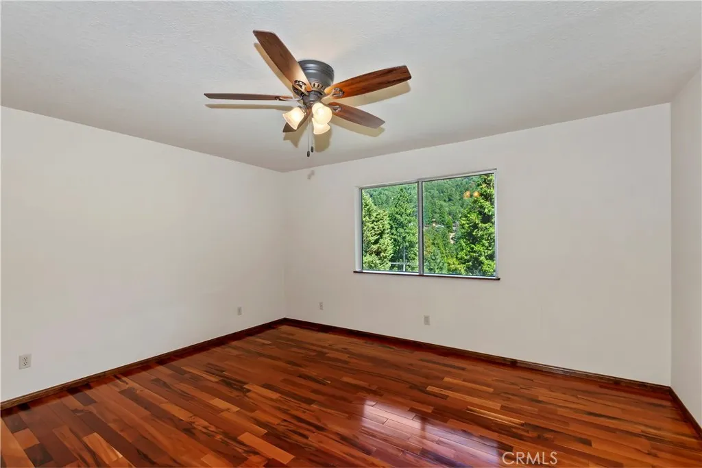 Discover your perfect retreat in this stunning 3-bedroom, 2-bathroom home offering an impressive 2,136 sq ft of gross area, thoughtfully designed for comfort and style. Conveniently equipped with central heating and air conditioning, this gem also includes dual-pane windows for energy efficiency and a garage for added convenience. Located just a short stroll from Crestline’s scenic Lake Gregory and a popular yoga studio, this property provides the ideal blend of accessibility and tranquility. Set on a picturesque 5,550 sq ft usable lot, this home features one of the few fully grassed and fenced backyards in Crestline, making it a haven for outdoor enjoyment. The enchanting outdoor space showcases a majestic 15-foot Blackberry Bush, serene Japanese Maple Trees, a practical storage shed, and a captivating rock waterfall & pond, providing a serene backdrop for relaxation. Step inside to admire the luxurious Koa Brazilian hardwood floors that flow throughout the home. The vaulted ceilings in the living room create an open and airy ambiance, enhanced by remote control skylights that invite natural light into your living space. This home is equipped with a 6-year-old shingled roof with a 30-year warranty, vinyl siding, and an automatic Generac standby generator to ensure comfort during stormy weather. Entertain with ease from the newly stained 2-car deck parking leading to a level front door entry. The inviting front porch is adorned with a beautiful Cherry Tree, boasting four different varieties of cherries, and an Apple Tree with an array of four diverse apples. The main living room, featuring a cozy rock wall gas & wood fireplace, seamlessly connects to the kitchen, which is complete with new butcher block counters and a window overlooking a lovely rose garden and flourishing fruit trees. On the bottom floor, you’ll find a full bathroom with heated floors and custom shelves, alongside two spacious bedrooms with access to a private back deck that shares spectacular views. Retreat to the primary bedroom, designed for comfort with his and her closets, one of which is a custom-built 7×12 ft walk-in. Just outside, unwind in a well-maintained covered Jacuzzi while soaking in the tranquil sounds of nature and stunning mountain views. With remarkable sunsets, starry nights, and breathtaking mountain views, this home is truly a sanctuary for those seeking serenity and the beauty of mountain living!