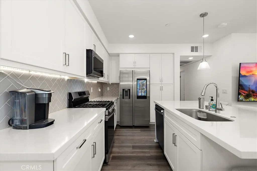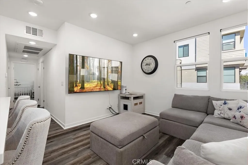 Experience modern living at its finest in this impeccable 2022-built townhome, perfectly situated in The Resort of Rancho Cucamonga. This 1,002 sq ft corner unit is designed for a stylish and convenient lifestyle. Step inside from your spacious tandem garage, featuring two extra storage areas and EV charging for both standard and high-speed vehicles.