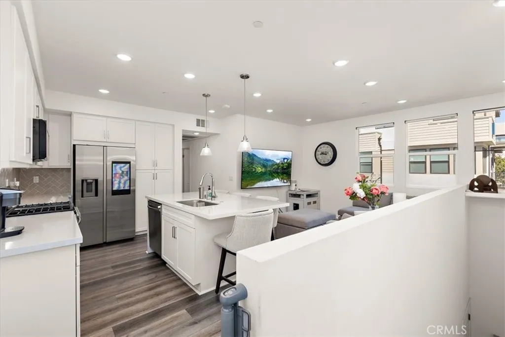 Upstairs, the main living area is an entertainer’s dream. The dining and living area is open and spacious enough for you to land and enjoy quality time with loved ones without feeling crowded. A large island with wrap-around counter space seamlessly connects the kitchen and living room. The kitchen boasts nearly new appliances, ample storage, and a pantry, making it truly move-in ready. From your cozy, north east-facing balcony, enjoy fresh morning air with stunning sunrise views over the San Bernardino Mountains.