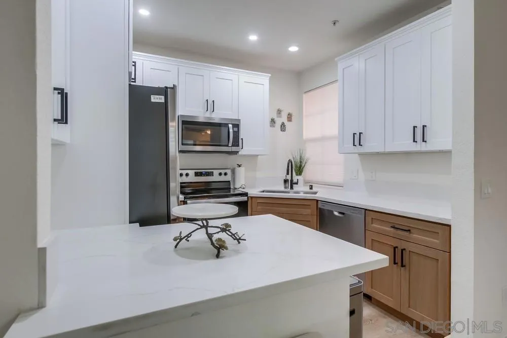 Experience resort-style living in the desirable gated community of Morada at Bernardo Vista Del Lago! This beautifully updated ground-floor 1-bedroom, 1-bath condo , is one few rare unit with a private 1-car garage welcomes you with soaring ceilings, abundant natural light, and elegant luxury wood flooring throughout the living and dining areas. The spacious bedroom includes a walk-in closet and private patio access, while the living room opens to a serene outdoor retreat complete with a large storage closet—perfect for relaxation or entertaining. The kitchen features brand-new appliances (all included), and a full-sized washer and dryer are conveniently located in the hallway. Enjoy the comfort of your private garage with extra storage and ample guest parking throughout the community. Residents of Morada at Bernardo Vista Del Lago enjoy resort-quality amenities, including two sparkling pools, a spa, tennis courts, a fitness center, clubhouse, and billiards room. Ideally situated just off I-15, you’re minutes from shopping, dining, Westfield North County Mall, and the scenic Lake Hodges trails. The HOA covers water, trash, exterior maintenance, and full access to all amenities. A true turnkey opportunity in one of San Diego’s most sought-after communities!