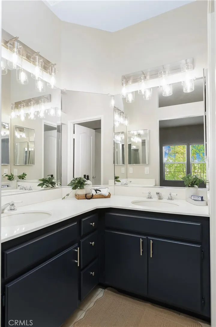 Upstairs, both bedrooms offer en-suite bathrooms. The primary bedroom features a large walk-in closet for added storage & convenience. Both bathrooms have been refreshed w/ Sherwin Williams naval blue designer paint & new light fixtures for a clean, contemporary look.