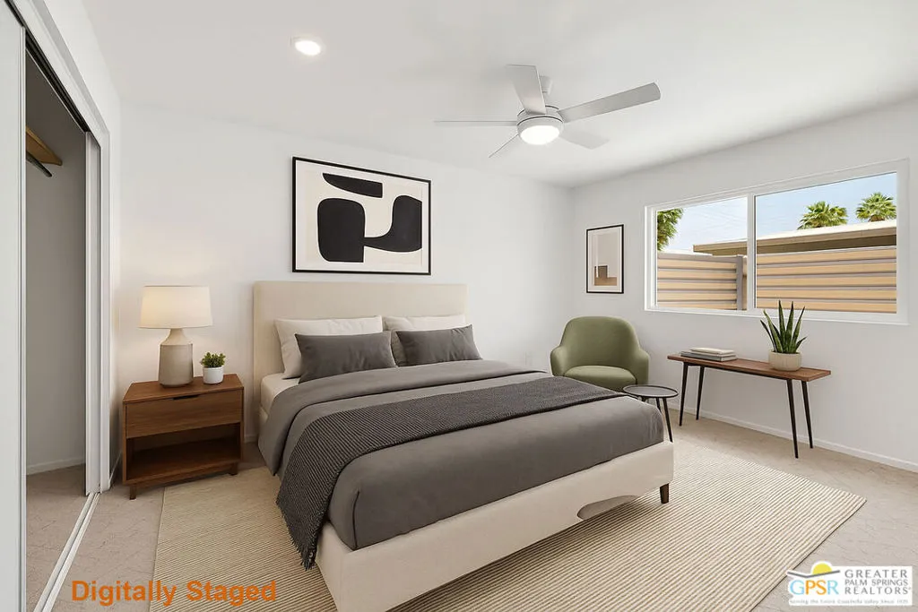 Step into this fully renovated midcentury gem nestled in the heart of Palm Springs’ coveted Sunmor neighborhood. Located on a quiet street believed to be partly developed by Julian Sifflegendary owner of the Chi Chi Lounge and the Starlite Roomthis architectural treasure features one of only two homes on the block with a striking folded-plate roofline. With 4 bedrooms and 2 bathrooms, this home seamlessly blends classic midcentury style with modern updates. The expansive open-concept living room is anchored by a stunning stone fireplace and flows effortlessly into the backyard oasis, complete with a sparkling blue pool and sweeping mountain views. Culinary enthusiasts will fall in love with the reimagined kitchen, featuring sleek quartz countertops, stainless steel appliances, and a rare indoor gas grillperfect for entertaining year-round. The spacious primary suite is your private retreat, offering a large walk-in shower with an outdoor shower and a generous walk-in closet. Three additional bedrooms provide flexible space for guests, a home office, media room, or creative studio. A newly epoxied two-car garage adds a polished touch and offers plenty of room for your prized vehicle. The oversized, professionally landscaped yard invites you to relax, entertain, or simply take in the breathtaking desert vistas. Don’t miss the opportunity to own this iconic piece of Palm Springs history. Contact the agent today for more information or to schedule your private tour.