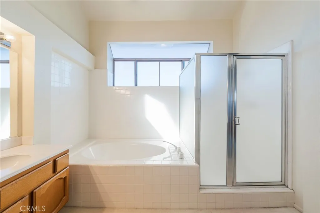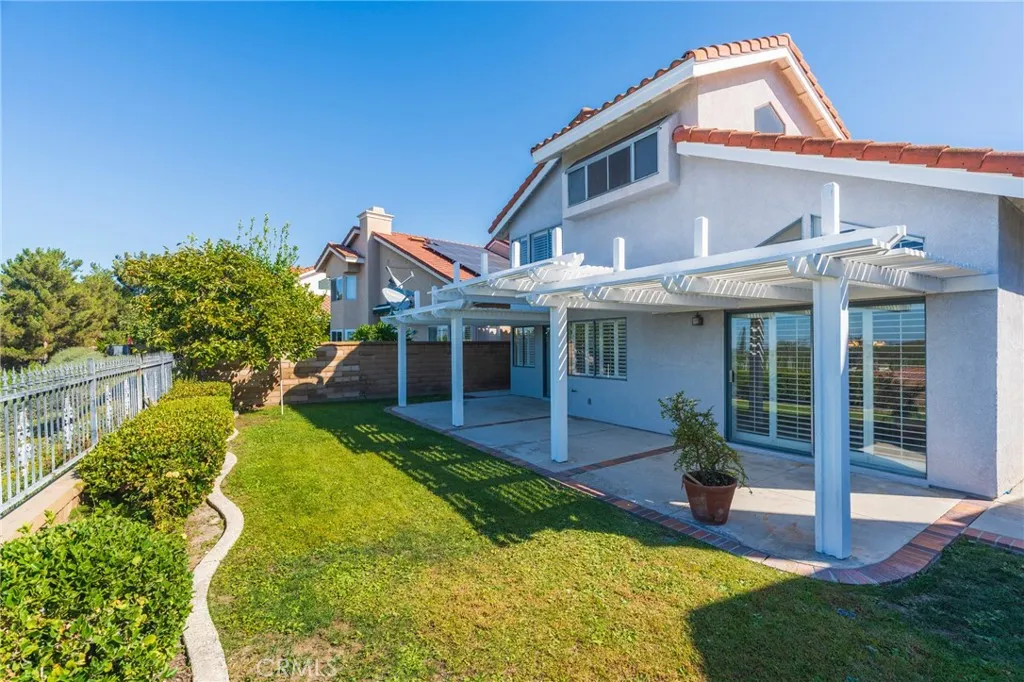 Welcome to 25091 Cheshire, a beautifully maintained two-story home in the desirable Pacific Hills community of Mission Viejo. This spacious home features vaulted ceilings, plantation shutters, and abundant natural light. The open floor plan includes formal living and dining areas, a family room with a fireplace, and a bright kitchen with recessed lighting and ample cabinetry. Upstairs, the primary suite offers high ceilings, a walk-in closet, and a large bath with a soaking tub and a separate shower. A small office area between bedrooms provides an ideal work-from-home or study space. The private backyard features a covered patio, lush lawn, and a mature persimmon tree. Enjoy a three-car garage, nearby Pacific Hills Park, and convenient access to shopping, dining, top schools, and Lake Mission Viejo amenities.