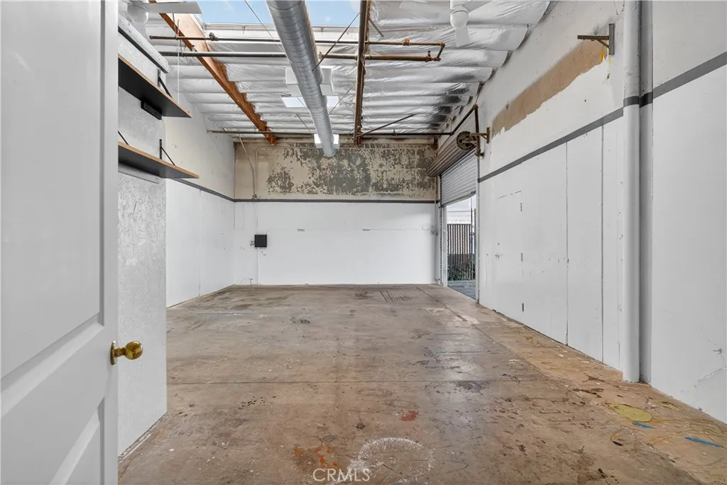 1,000 SF of ground-floor flex space, including a roll-up door for loading, private restroom, high ceilings (approx. 14’), and abundant natural light via skylights.