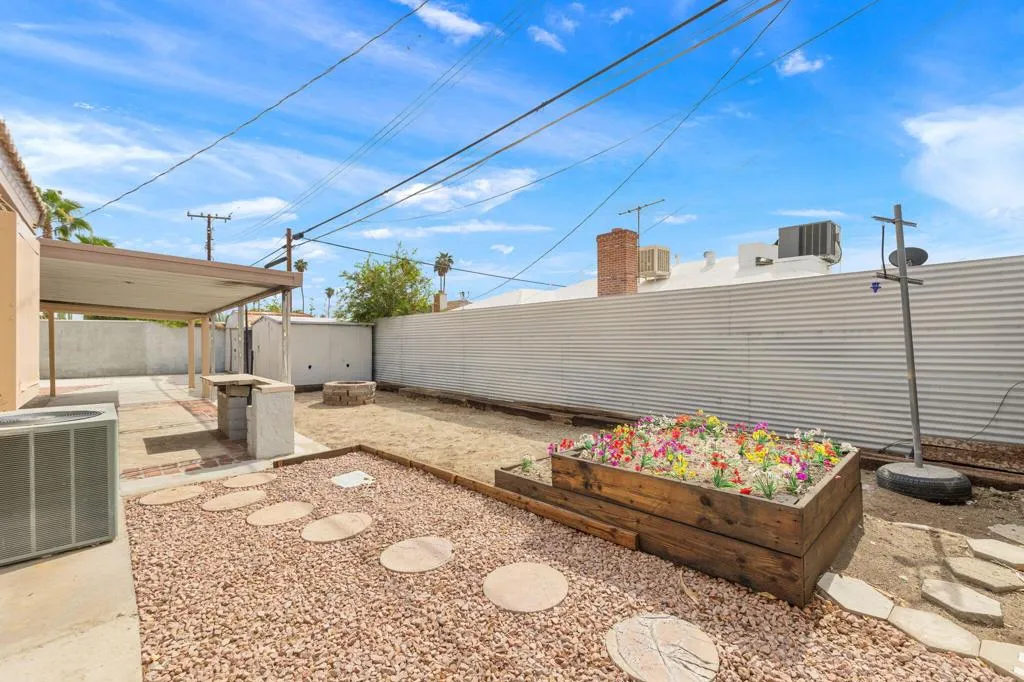 Assumable FHA loan at 2.875% available, buyer to qualify; lender approval required. South Palm Springs fee-simple, owned land, in Demuth Park with mountain views and RV or boat parking. Gated single-level 4BD, 1.5BA, approx. 1,433 SF blending mid-century warmth with practical updates. Light living room with natural-stone, wood-burning fireplace. Kitchen with granite counters, warm wood cabinetry and flagstone flooring; nearby flex space adds storage. Bedrooms are well separated; primary sits toward the quiet rear. 4th bedroom offers an upper/lower sleeping loft, ideal for guests, kids or office. Oversized main bath with dual vanities, shower/tub, laundry and extra storage; plus a half bath. Spacious yard for a future pool, covered patio dining, BBQ counter, firepit zone and planters. Driveway gates to RV parking with sewer access; newer electrical panel and room for 220 at RV area. No HOA, no land lease. Close to Prescott Preserve, Demuth Park pickleball, Smoke Tree Commons, airport and downtown. STRs may be permitted; buyer to verify permits and measurements. Quiet south-end, low-wind spot with sunsets and quick access via El Placer, Ramon Rd and Hwy 111. Minutes to dining and hiking; enjoy south-end serenity and quick routes to Palm Canyon, El Cielo and I-10. See it in person.