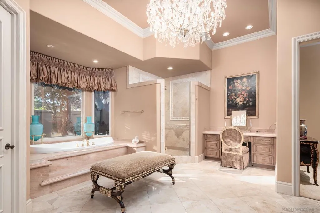 Set behind gates on 3.34 lush acres, this private Del Rayo Estates masterpiece offers panoramic views and resort-style living. The main residence features grand formal rooms, a chef’s kitchen, expansive family and game rooms, wine cellar, media room, executive office, and six luxurious bedroom suites — including a stunning primary retreat with dual baths and dressing rooms. Outdoor living shines with a dazzling pool, waterfall, full pool pavilion (kitchen, bar, pizza oven, fireplaces), covered loggias, summer kitchen, and manicured gardens. A separate 990 SF guest house includes a full suite with bar and living area. Additional highlights: 8-car garage, natural gas, sewer, full security system. One of the finest estates in Del Rayo — a rare offering of timeless beauty, privacy, and exceptional craftsmanship. Gracing a prime location in Del Rayo Estates with expansive views, this magnificent 3.34-acre estate is gated and lushly landscaped — with complete privacy. From the moment you arrive, you are enveloped in the ambiance of a Mediterranean paradise, where mature pepper trees, stately palms, and the soothing sounds of cascading water create a serene and luxurious atmosphere. Impressive entry gates open to reveal sweeping lawns, mature lush landscaping, and an elegant motor court. The residence itself beckons with grand yet inviting spaces that flow effortlessly indoors and out — leading to a dazzling pool with stone detailing, a massive waterfall, and an extraordinary pool pavilion featuring a full kitchen, bath, bar, pizza oven, and dual fireplaces. A separate 990 sq. ft. guest house offers a large sitting room with bar, full bath, and private bedroom — perfect for guests or extended family. Inside the main residence, large picture windows frame panoramic views. The formal living and dining rooms provide ideal settings for grand entertaining, while the chef’s kitchen — with a generous center island, professional-grade appliances, and breakfast area — opens to an expansive family room with fireplace, custom built-ins, and an adjoining game room with a professional bar and wine cellar. The estate encompasses six exceptionally appointed bedroom suites, each with private baths and spacious closets. The private, oversized primary suite offers a tranquil retreat with sitting area and fireplace, dual custom dressing rooms, and separate sumptuous baths —all capturing breathtaking views. Additional features include a wood-paneled executive office/library, secondary office or fitness room, and a state-of-the-art media room. Outdoors, enjoy multiple entertaining venues —covered loggias with summer kitchen, outdoor fireplaces, manicured gardens, and rolling lawns. Garaging for eight vehicles, natural gas, sewer, and a comprehensive security system complete the offering. Every element has been thoughtfully selected and executed with the highest quality craftsmanship. Simply stated, this is one of Del Rayo Estates’ most exceptional etates.