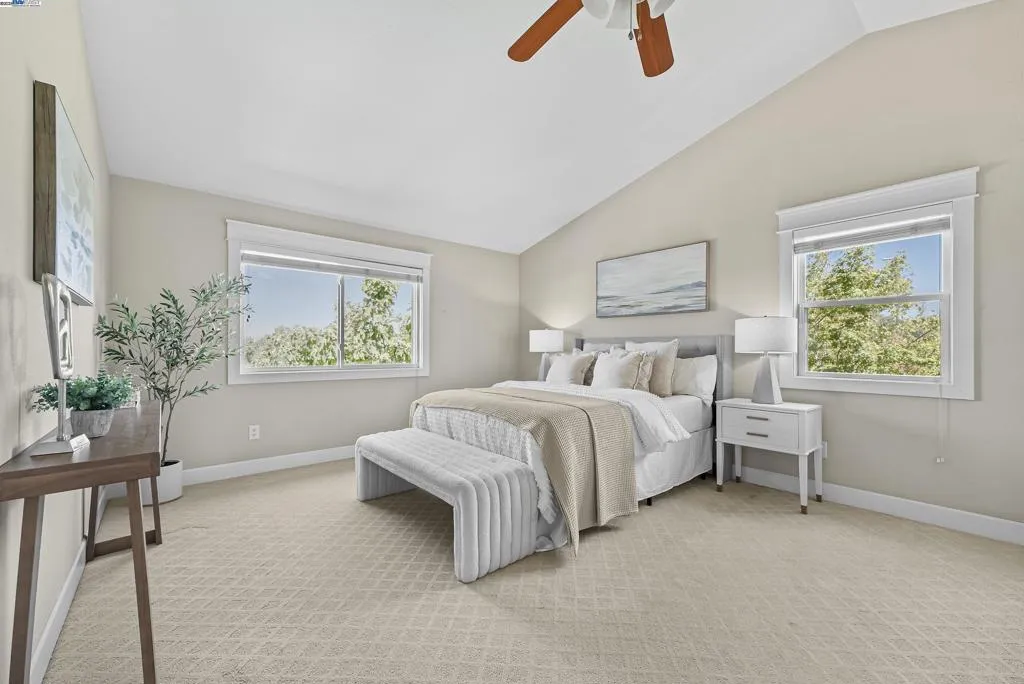 Tucked away at the end of a serene cul-de-sac, this beautifully updated 4-bedroom, 3-bathroom home offers approximately 2,151 sq. ft. of comfortable living on an expansive 10,000+ sq. ft. lot. The thoughtfully designed floor plan includes a convenient downstairs bedroom and full bath—ideal for multi-generational living or guest accommodations. Inside, the home showcases a modernized kitchen, elegant hardwood floors, and expansive windows that flood the space with natural light. All four bedrooms are bright retreats with mountain views and feature built-in closets for effortless organization. A water softener system further enhances daily comfort. Step outside to your private backyard oasis, where you’ll enjoy sweeping views of Mt. Diablo, 16 mature fruit trees, and a generous side yard—perfect for gardening, entertaining, or simply relaxing in total privacy. Located in the highly sought-after Shadow Cliffs neighborhood, this residence combines tranquility with convenience. With low HOA fees and just minutes from top-rated Pleasanton schools, downtown dining and shopping, scenic parks, and major commuter routes, it’s the perfect blend of comfort and lifestyle. A rare move-in-ready opportunity in one of Pleasanton’s most desirable and established communities.