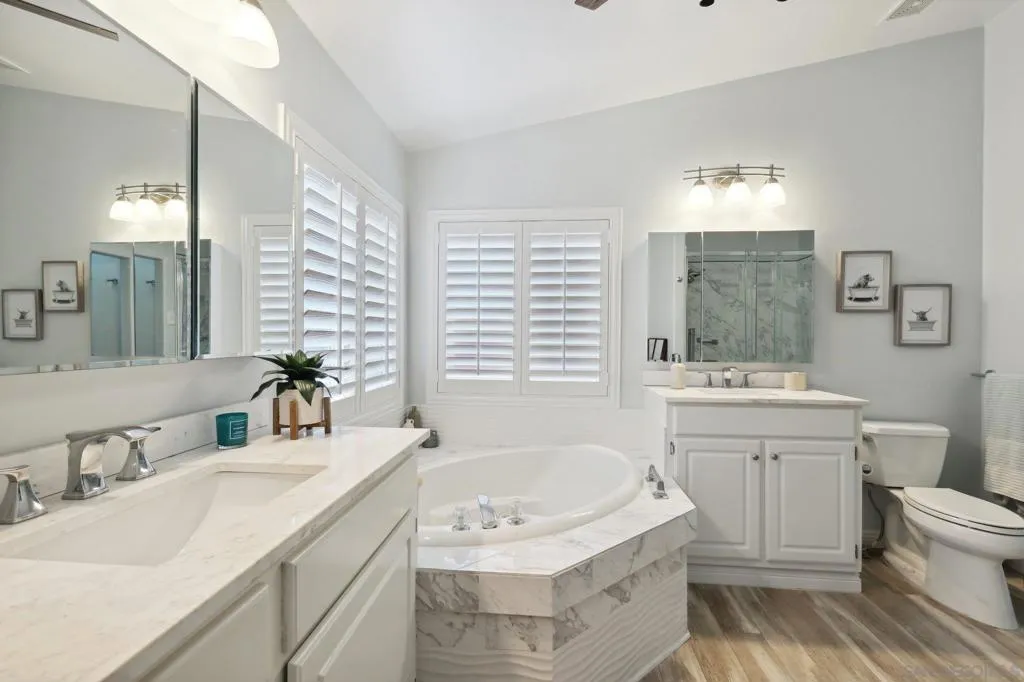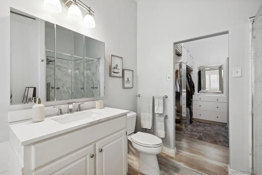 Motivated seller!! Priced to sell! Don’t miss this below-market opportunity! Bring all offers!! Welcome to one of the largest 2-bedroom, 2-bath homes in the highly sought-after 55+ community of Lakeshore Gardens in beautiful Carlsbad – just a block from the beach! This completely updated beachside retreat features a light, bright, and spacious open floor plan with modern coastal finishes that exude relaxation. The oversized great room boasts soaring beamed ceilings, a cozy fireplace, and plenty of space for living, dining, and lounging. The gourmet kitchen is perfect for entertaining, offering abundant cabinetry, generous counter space, and a large center island with breakfast bar seating. Step through the charming French doors and onto your private front deck, perfect for morning coffee or evening relaxation. The primary suite is a true king-sized retreat with space for a sitting area or home office, a huge walk-in closet, and a spa-like bathroom featuring dual vanities, a corner jetted soaking tub, and a custom walk-in shower. Low taxes=savings! Enjoy resort-style living with Lakeshore Gardens’ extensive amenities including a 14,000 sqft clubhouse overlooking the lake, BBQ and outdoor lounge areas, billiards, ping pong, a library, dining and entertainment facilities, a fitness center, pool, spa, sauna & RV storage. This lovingly maintained community is just minutes from shopping, dining, camping, beach activities, & offers easy access to freeways and public transit. Don’t miss this opportunity to own the best home in one of Carlsbad’s most desirable coastal communities!