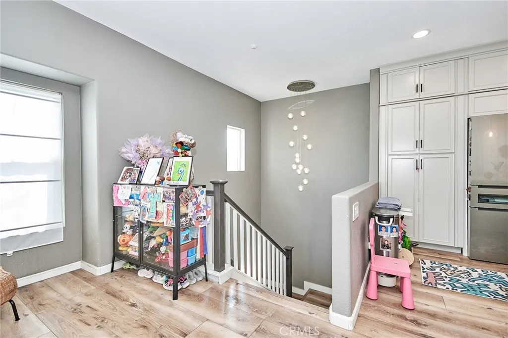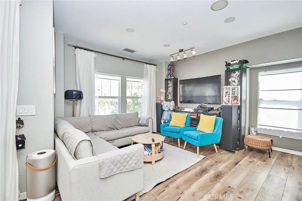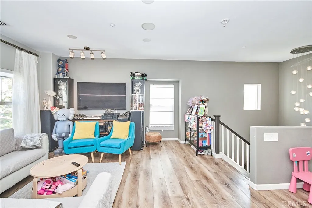 Price REDUCTION! Discover the epitome of modern living in this exquisite corner unit within Rancho Cucamonga’s prestigious Brighton at Etiwanda community. This thoughtfully upgraded 2-bedroom, 1-bath residence boasts an open-concept layout with soaring ceilings, where all living spaces are conveniently situated upstairs for enhanced privacy. The contemporary kitchen stands out with its self-closing cabinets, premium quartz countertops, stainless steel appliances, and generous pantry—ideal for everyday meals or hosting gatherings. Adjacent, the dining area features a chic light fixture and seamlessly connects to the living room, bathed in natural light from expansive windows. Step out from the living space or the master bedroom onto one of two private balconies, perfect for morning coffee or evening unwinding. The master suite offers a spacious walk-in closet, direct balcony access, and an en-suite bath with dual sinks, modern cabinetry, quartz vanity, and a walk-in shower. Throughout the home, durable wood-look waterproof luxury vinyl flooring adds a touch of elegance, complemented by a convenient indoor laundry area for full-sized appliances. Additional highlights include a large attached 2-car garage with direct access and extra storage, plus recent remodels in the kitchen and bath. Community perks abound with low HOA dues covering water, along with access to a resort-style pool, spa, outdoor showers, BBQ and picnic areas, and a playground. Ideally positioned just moments from Victoria Gardens for upscale shopping, dining, and entertainment, and with seamless connectivity to the 15, 210, and 10 freeways, this home delivers unparalleled convenience in a sought-after neighborhood. Schedule a viewing today and envision your future here.