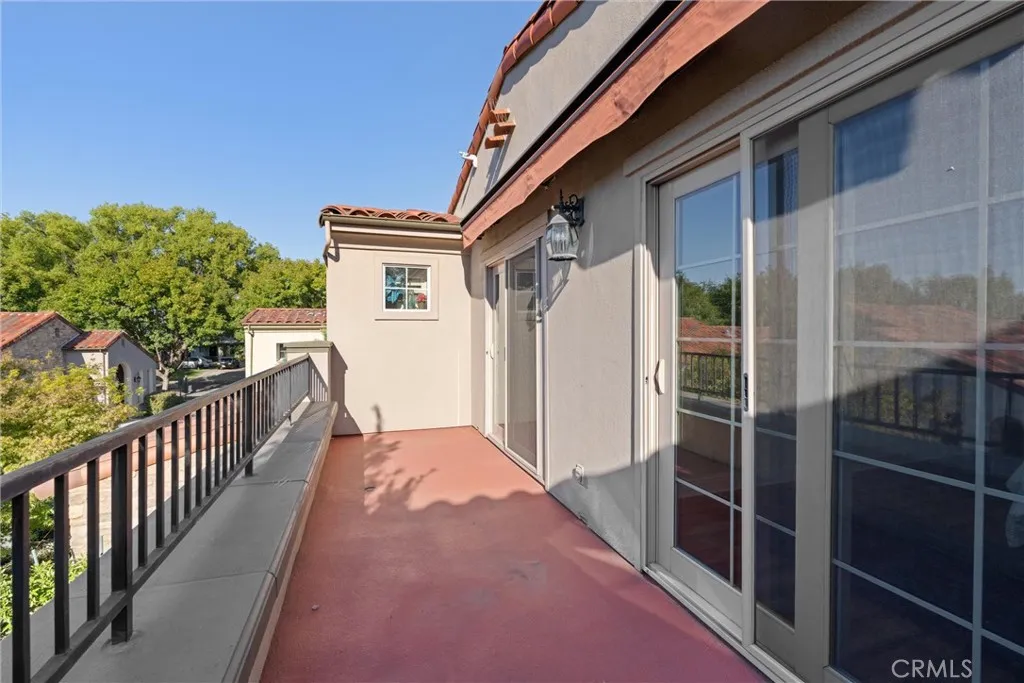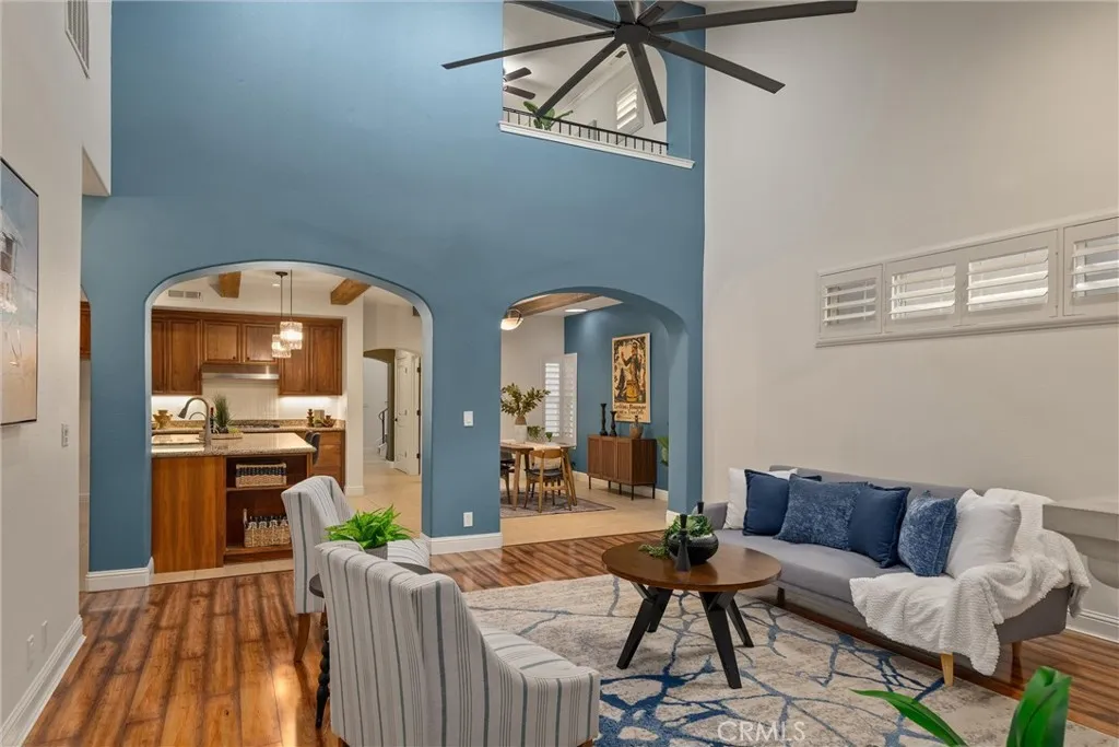 Welcome to 79 Veneto Circle, nestled in the prestigious Sorento community, where timeless elegance meets modern comfort. Step through a grand entry framed by graceful archways and soaring ceilings into a home rich with architectural beauty and refined finishes. Elegant window shutters, custom ceiling fans, and designer lighting enhance every space. This luxurious two-story residence offers 3 bedrooms, 2.5 baths, an open upstairs office, and two primary suites. The upstairs primary features a private balcony with designer wrought-iron railing, a large custom-tiled shower, dual sinks, and elegant lighting. A guest bedroom shares the balcony, while the third bedroom provides cozy comfort. The downstairs spacious primary suite offers a private retreat with high ceilings, an oversized walk-in closet, walk-in shower, soaking tub, and direct access to the tranquil patio with a built-in outdoor bar—perfect for morning coffee or evening relaxation. The living room exudes warmth with a gas fireplace and airy ambiance. The chef’s kitchen is a dream come true with rich cherry wood cabinetry, granite countertops, a large island, breakfast bar, walk-in pantry, and solar tube lighting. Additional highlights include a designer wrought-iron staircase, finished two-car garage, newer HVAC, dual mini-split systems, and a tankless water heater. The backyard oasis offers shaded trees, flower beds, and peaceful charm. Experience luxury and sophistication at 79 Veneto Circle—a true Sorento gem.