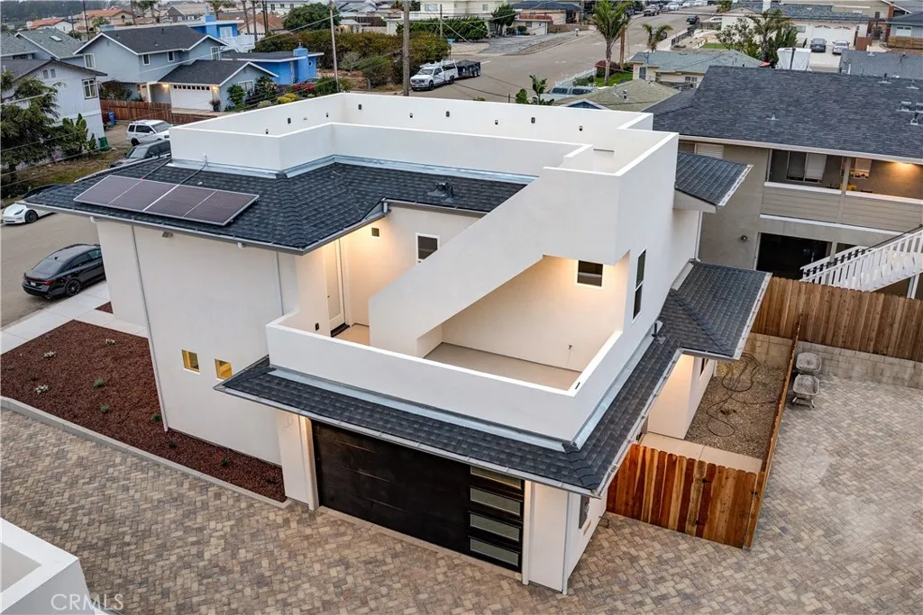 ***PRICE IMPROVEMENT*** Luxury finishes and panoramic ocean views take center stage in this brand new North Grover Beach residence. Bright, open interiors showcase luxury finishes, soft close cabinetry, ocean vistas and a seamless indoor/outdoor flow that makes everyday life feel like a getaway. The chef’s kitchen balances function and style, with smart LG ThinQ stainless appliances, quartz countertops, a bold waterfall island, and thoughtfully designed pull out drawers in select cabinets and pantry spaces for effortless organization. Just steps away, the inviting living room centers around a sleek gas fireplace, creating the perfect backdrop for both quiet evenings and lively gatherings. The primary bedroom features a beautiful ensuite with exquisite quartz finishes, walk in shower, double vanity, and a soaking tub. Three bedrooms are conveniently located on the main level, offering comfort and practicality for everyday living. The main floor bathroom exudes sophistication with porcelain tile flooring and shower, while the dedicated laundry room provides functionality with extra storage and a utility sink. Designed for true indoor/outdoor living, the home offers three unique outdoor spaces: a deck off the living room, a deck off the kitchen, and a spectacular rooftop retreat accessible directly from the kitchen stairway. At the rooftop you have, built in lighting, multiple outlets, and gas plumbing make it an entertainer’s dream where you and your guests can soak in breathtaking sunsets and endless ocean vistas. Landscaped front and rear yards extend your living space outdoors, while owned solar and energy efficient features ensure year round comfort and ease. All of this, just minutes from beaches, dining, shopping, and scenic coastal trails, makes this home a perfect expression of the Central Coast lifestyle you’ve been dreaming of.