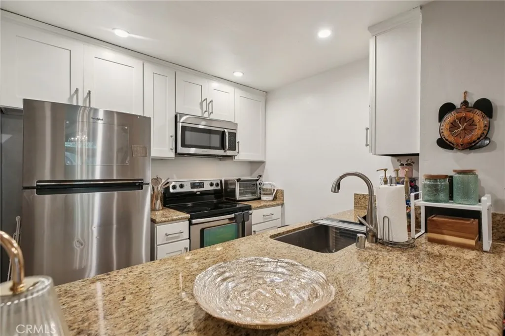 Step inside to find a freshly painted interior with granite countertops, an open-concept living area, and abundant natural light streaming through large windows. The kitchen blends functionality with modern appeal, featuring sleek appliances along with a breakfast bar ideal for casual dining or entertaining guests.