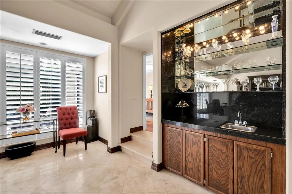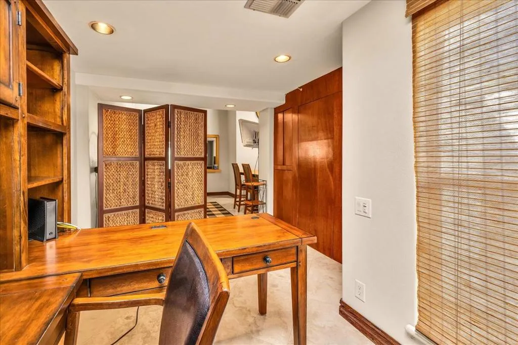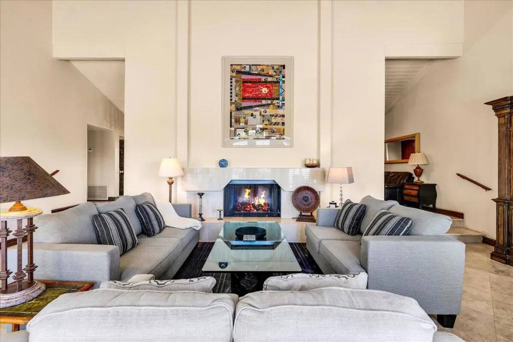 Discover this private and inviting condo, perfectly designed for comfort and convenience. A rare attached two-car garage with built-in storage sets this property apart. Inside, travertine floors flow seamlessly throughout, complementing the spacious great room with a wet bar–ideal for entertaining. The kitchen features a cozy sitting area, while a dedicated office space provides functionality for today’s lifestyle. Enjoy the best of outdoor living with both a front courtyard and a back patio, perfect for relaxing and taking in the upcoming cooler weather. The home is ideally located near the community pool, spa, and expansive green space. This phase of the community is scheduled for fresh exterior painting soon. HOA benefits include a Spectrum package with Wi-Fi and Cable TV, ensuring convenience and value. Club and Fitness Memberships are not included but available through Mission Hills Country Club.