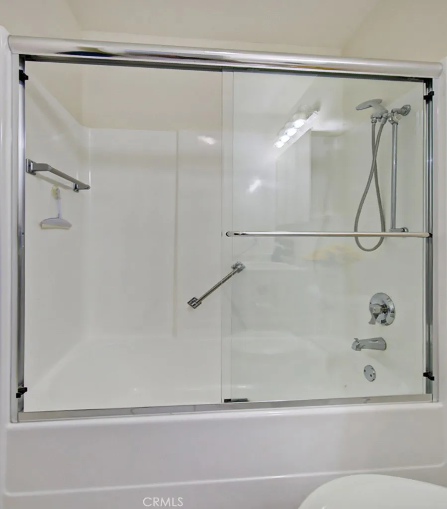 Down the hallway, you’ll find three generous bedrooms, including a versatile third bedroom ideal for a home office or den. The guest bathroom features a sparkling clean tub/shower combo, while the spacious primary suite offers a large vanity with double sinks and a step-in shower with a built-in bench for easy access.