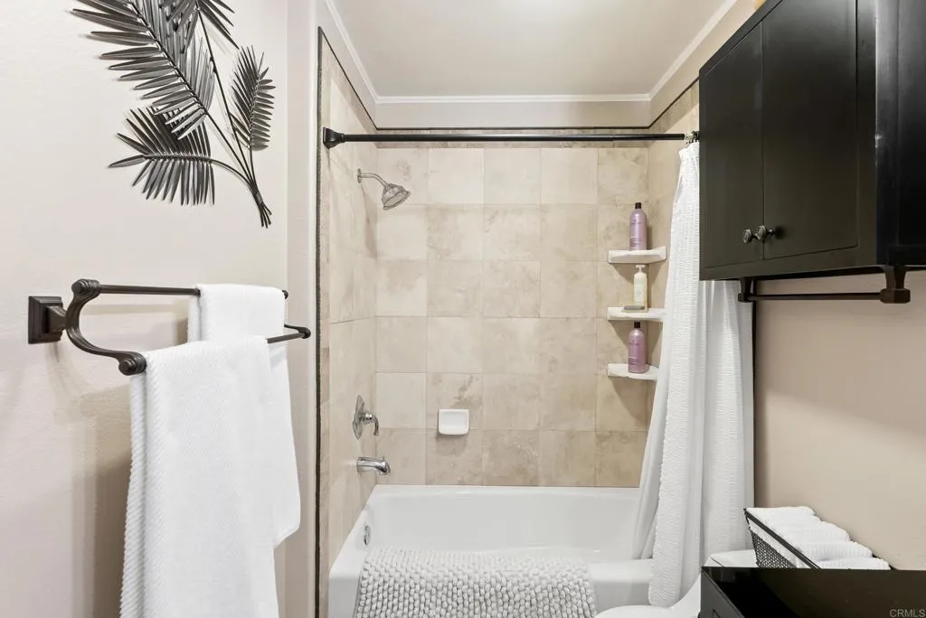 Welcome home to 12007 Alta Carmel Ct, Unit 325. Your exquisitely and beautifully updated 1-bedroom/1-bath oasis offers 704 sq. ft. of comfort and style in one of Carmel Valley’s most sought-after communities. Pride of ownership is immediately evident as you step inside and notice the custom cork laminate flooring, crown molding, recessed lighting and built in speakers that set a warm, inviting tone. Open living space is complemented by newer double-pane windows and sliding patio door and a new HVAC system (installed in 2024) for year-round comfort. Your kitchen is a dream with granite counter tops, whisper-close cabinets, brand new stainless steel appliances including refrigerator, range and dishwasher. Step further into the walk-in pantry-blending style with everyday convenience. Finally, the new elegant and highly efficient washer and dryer are included with the home. The spacious bedroom includes custom planation shutters and matching closet doors, while the fully remodeled bathroom showcases a Tuscan-inspired shower that feels like a spa retreat. Beautiful ceiling fans and thoughtful finishes throughout add both charm and functionality. Beyond the home itself, residents enjoy resort-style amenities including a heated pool, tennis and basketball court, soothing jacuzzi, barbecue area, gym, and a recently renovated sauna- perfect for both relaxation and entertainment. Located in the heart of Carmel Valley, this condo offers easy access to top-rated schools, scenic parks, shopping, dining, and just a short drive to San Diego’s world-famous beaches. Whether you’re a first-time buyer, downsizing, or looking for a fantastic investment, your home combines modern upgrades with a lifestyle that’s hard to beat. Come experience it for yourself -this Carmel Valley gem won’t last long!
