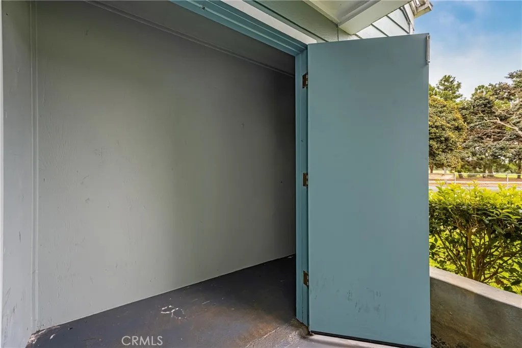 Step outside through the sliding glass door to a spacious private patio, beautifully enclosed with greenery, plus a secure outside storage area.