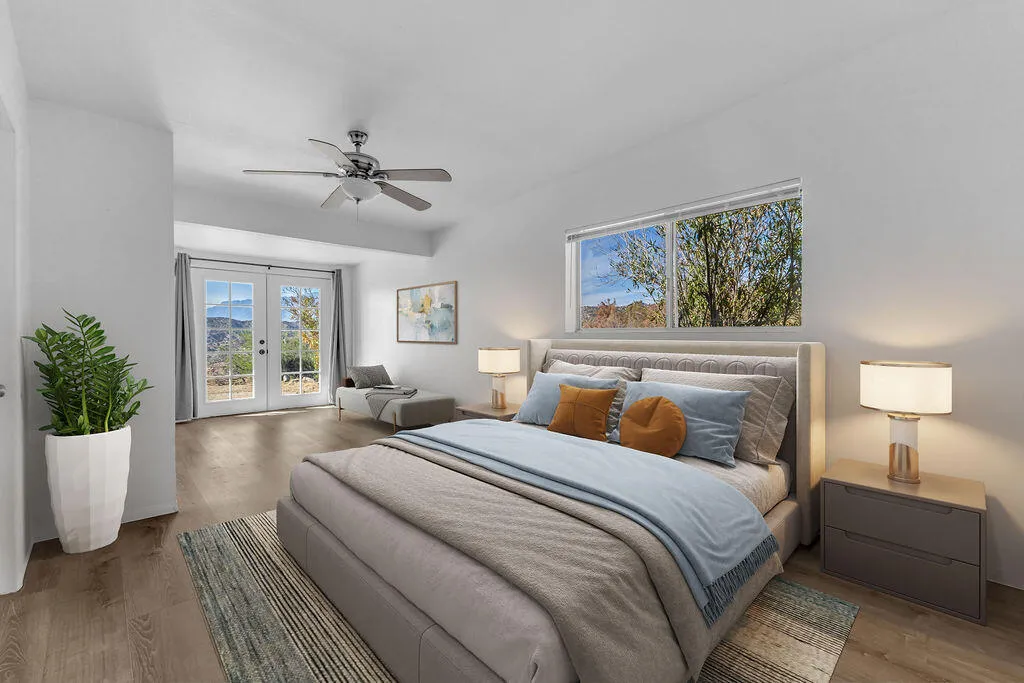 Wake up to wide-open skies, mountain silhouettes, and the kind of quiet you can only find on acreage. This expansive ranch-style retreat offers a rare blend of privacy, scale, and natural desert beauty, set on 2.5 acres with sweeping panoramic views in every direction.Designed for effortless indoor-outdoor living, nearly every room opens to the outdoors, inviting natural light and breathtaking scenery inside. The heart of the home is a generous, open kitchen that flows seamlessly into the living and dining spaces, creating an ideal setting for gathering, entertaining, and everyday comfort. A central fireplace anchors the space with warmth and charm, while oversized windows frame the surrounding desert and mountain landscape like living artwork.The primary suite feels like a private sanctuary, featuring a cedar-lined closet and a classic clawfoot soaking tub positioned to capture the views — a perfect place to unwind at the end of the day. Outside, mature desert landscaping enhances the sense of tranquility, while the long circular driveway offers both ease of access and a grand sense of arrival. A private well adds to the property’s self-sufficiency and appeal.Whether you envision a family compound, a peaceful desert escape, or a one-of-a-kind entertaining property under open skies, this home offers space, serenity, and unforgettable scenery in every direction.