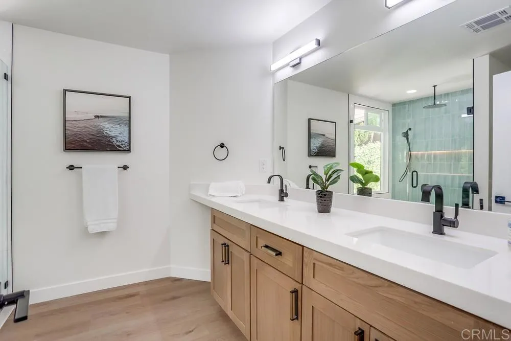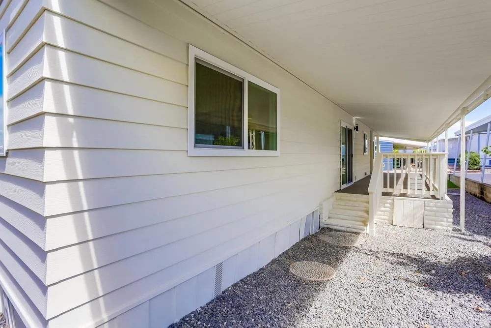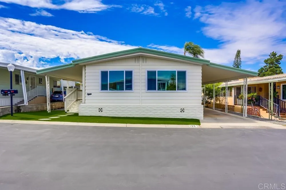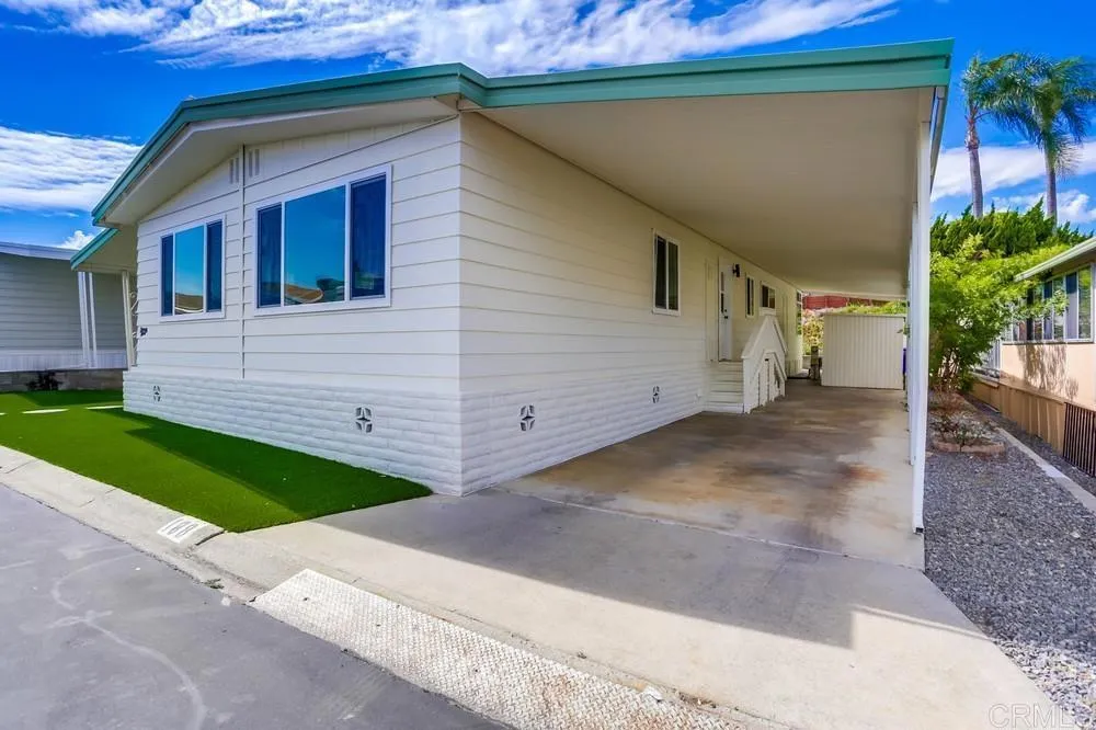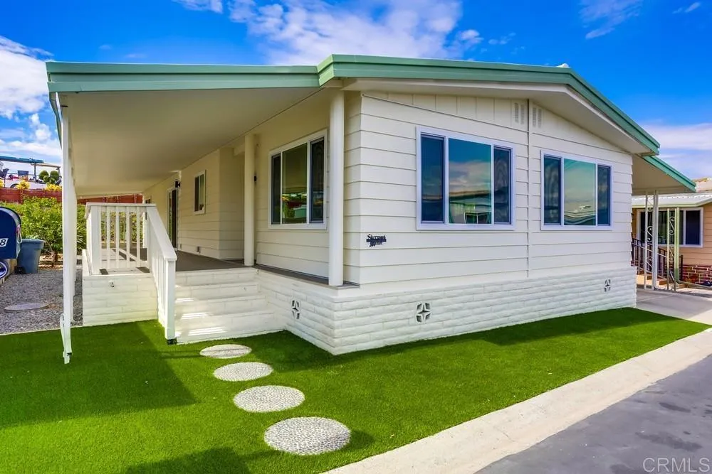 REMODELED 3 Bedroom / 2 Bathroom home located in a 55+ resort style community w/ rent control. This home has been beautifully remodeled inside and out, no expense spared including: New furnace, New A/C, and newly-sealed metal roof, 8mm vinyl flooring throughout (no carpet), 2.25″ quartz countertops and vanities, new appliances w/ chef’s kitchen and vented hood, boutique lighting & Kohler plumbing fixtures, new dual-pane gas-insulated windows, new doors, remodeled Bathrooms including a huge custom tiled shower & dual vanity in the Primary Bathroom, refinished walls & ceilings, and so much more! Large covered porch, low maintenance yard, and two storage sheds. Rancho Vallecitos is a beautiful, 5-Star, resort style community for persons 55 years of age and over (2nd resident can be age 45+). One of the most beautiful manufactured home communities in California, Rancho Vallecitos has great views that can be enjoyed throughout the community, plus many social activities and amenities. Amenities include a clubhouse/recreation building, pool & spa, library, gym, billiards room, card tables, game and craft room, putting green, dog park, RV parking for an additional cost, and so much more! Monthly space rent is $588.18 and park is under city rent control.