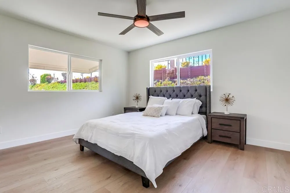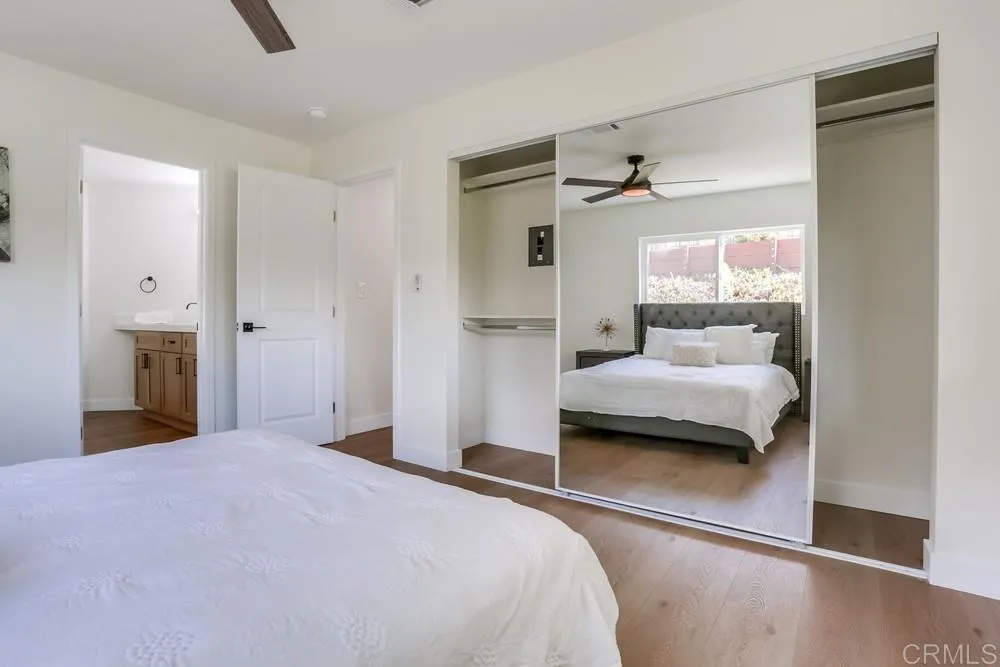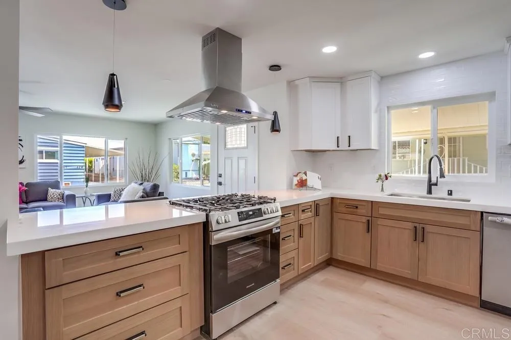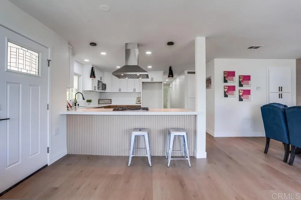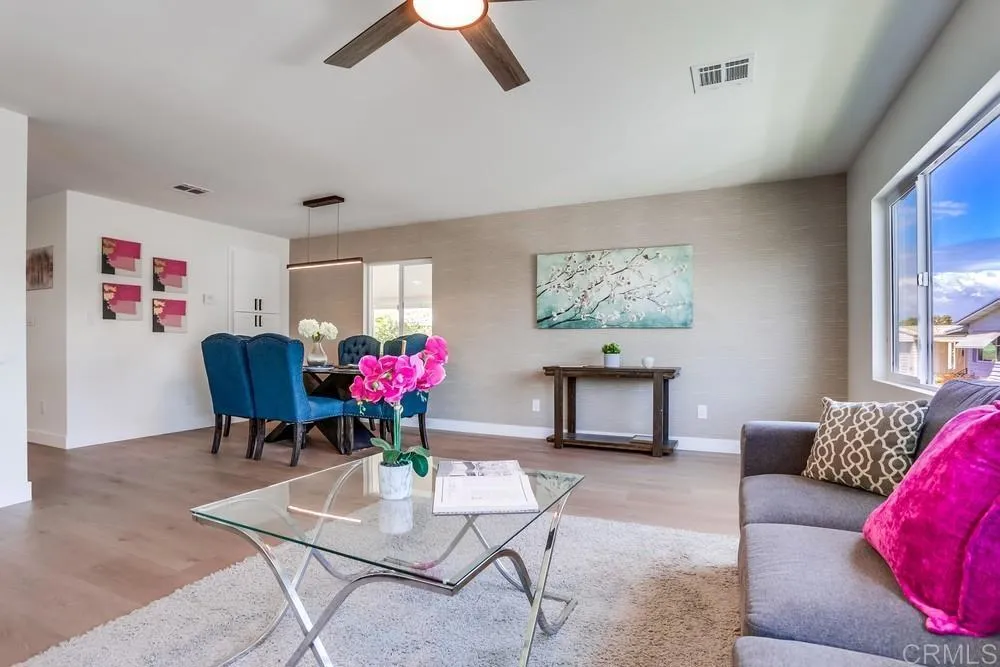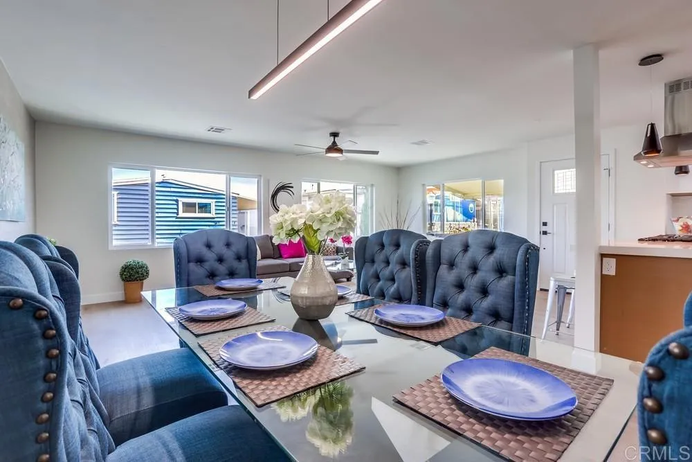REMODELED 3 Bedroom / 2 Bathroom home located in a 55+ resort style community w/ rent control. This home has been beautifully remodeled inside and out, no expense spared including: New furnace, New A/C, and newly-sealed metal roof, 8mm vinyl flooring throughout (no carpet), 2.25″ quartz countertops and vanities, new appliances w/ chef’s kitchen and vented hood, boutique lighting & Kohler plumbing fixtures, new dual-pane gas-insulated windows, new doors, remodeled Bathrooms including a huge custom tiled shower & dual vanity in the Primary Bathroom, refinished walls & ceilings, and so much more! Large covered porch, low maintenance yard, and two storage sheds. Rancho Vallecitos is a beautiful, 5-Star, resort style community for persons 55 years of age and over (2nd resident can be age 45+). One of the most beautiful manufactured home communities in California, Rancho Vallecitos has great views that can be enjoyed throughout the community, plus many social activities and amenities. Amenities include a clubhouse/recreation building, pool & spa, library, gym, billiards room, card tables, game and craft room, putting green, dog park, RV parking for an additional cost, and so much more! Monthly space rent is $588.18 and park is under city rent control.