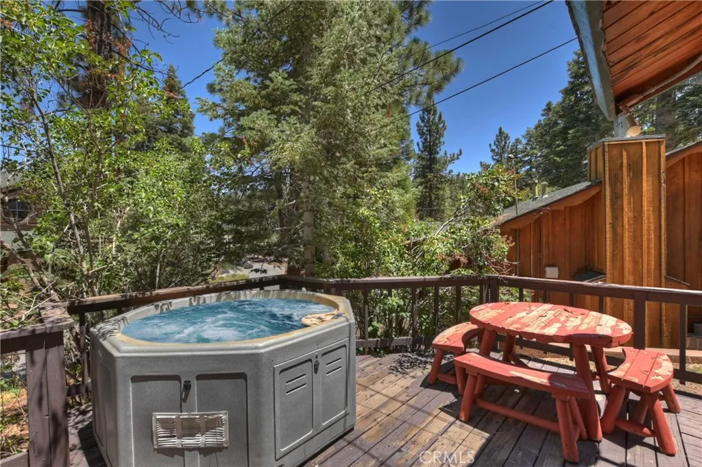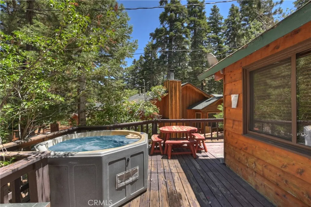 Fully furnished and move-in ready! Welcome to your cozy mountain escape in the heart of Moonridge. This classic A-frame cabin with ranch-style extensions offers privacy, charm, and the full Big Bear experience. This 2-bedroom, 1-bath home comes complete with all furniture, décor, and a private hot tub—making it the perfect turnkey retreat or short-term rental. Inside, enjoy rustic wood accents, a brick fireplace, and an open living space designed for comfort. Step outside to a spacious deck surrounded by trees, ideal for relaxing or entertaining. Just minutes from Bear Mountain Resort, the zoo, golf course, and Big Bear Lake. Whether you’re looking to generate rental income or enjoy your own mountain getaway, this cabin is ready to welcome you. Don’t miss this opportunity!