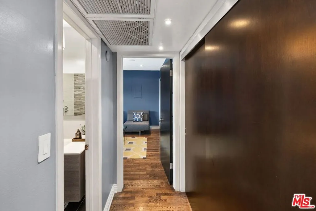 Welcome to a charming unit at the base of Hollywood Dell in the Hollywood Hills. This bright and sunny two-bedroom, two-bathroom unit features an open floor plan with spacious dining and living area, hardwood floors and central air/heat. The remodeled kitchen has beautiful green Ann Sacks tiles, white granite counter tops, spacious built-in cabinets and stainless-steel appliances. The balcony is perfect for al-fresco living and relaxing under the city lights. The primary suite offers beautiful views of the Hollywood Hills and a large walk-in closet. Primary bathroom was remodeled with Porcelanosa ceramic tiles in the shower, Porcelanosa European style toilet, Porcelanosa mirror, and marble countertop with floating dual sinks. Second bedroom suite is ideal for roommate, guests or a home office. The second bathroom has custom granite countertop and Porcelanosa tiles in the shower. The unit is conveniently located near Hollywood’s nightlife and restaurants, Los Feliz, and Silver Lake, easy access to local freeways. This unit is close to The Oaks Market, Daily Planet, Gelson’s, Trader Joe’s, and El Capitan & TCL Chinese movie theatres. Enjoy nearby hiking trails at Bronson Canyon, Fern Dell Nature Trail, Hollywood Reservoir, and Griffith Park. The building’s amenities include a heated pool, bike storage, barbecue area and lounging deck. HOA includes water, trash, gas and AC electric. The recent high HOA fee is due to increased insurance cost and SB 721 compliances to all balconies being retrofitted. Rare gem to call your home with everything you need at your fingertips.