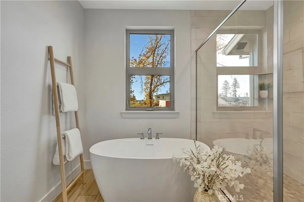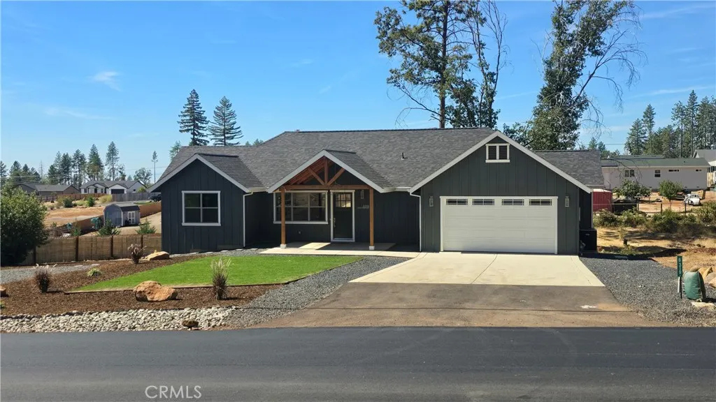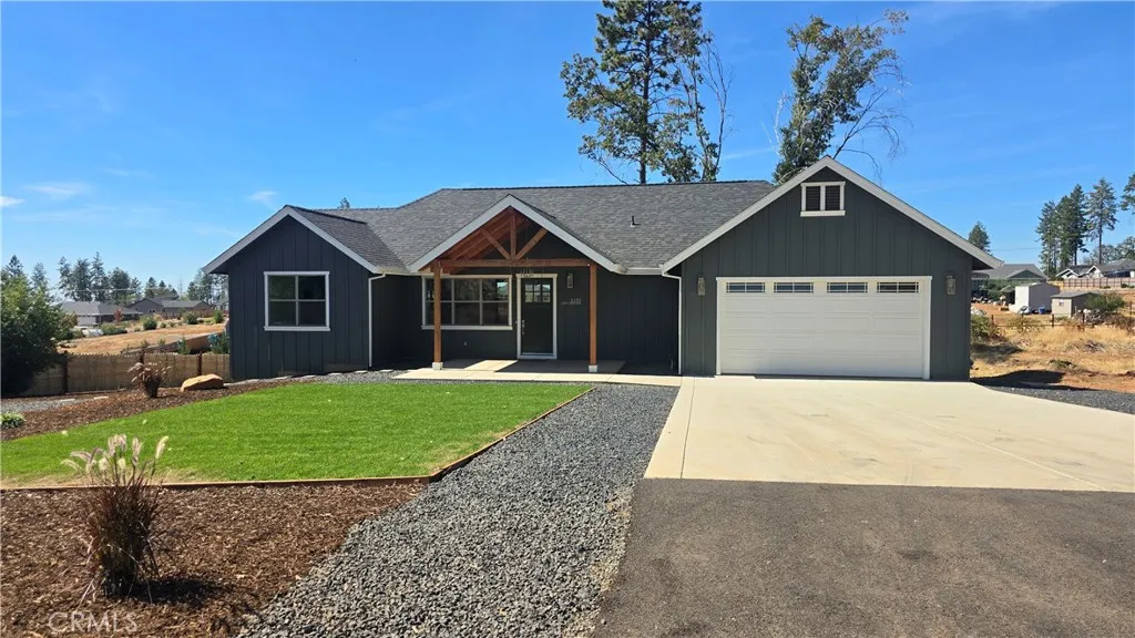 QUALITY BUILT FROM TOP TO BOTTOM!! This 3-bedroom, 2.5-bath beauty boasts 1980 sqft of living space that is nestled on just over a half-acre with a landscaped front yard, graveled side yard RV access, beautiful covered front porch and large covered back deck with views to the coast range & valley. As you enter the house, you are greeted by a grand living space filled with an abundance of natural light streaming through large windows. The beamed ceilings add depth and character to the space & the gas fireplace creates a cozy and welcoming ambiance. The gourmet kitchen is a culinary enthusiast’s dream comes true and is equipped with soft close drawers, top-of-the-line stainless steel GE Cafe brand appliances and a large walk-in pantry you will love! The quartz countertops provide ample space for meal preparation, room for counter-top appliances and a large center island with seating access! The sliding glass doors lead you to the covered back deck, complete with two outdoor ceiling fans, providing beautiful views to the valley and amazing sunsets, blending indoor and outdoor living! Whether you’re enjoying a morning cup of coffee or hosting a summer barbecue, this space is perfect for relaxing and entertaining alike. Designed with comfort and privacy in mind, this home boasts a split floor plan, placing the primary bedroom on the opposite side of the house from the guest bedrooms. Your primary bedroom is a sanctuary that offers a tranquil retreat with ample space & large walk-in closet. The en-suite bathroom features a luxurious walk-in shower, separate soaking tub, double sinks and modern fixtures. Adjacent to the primary suite, is the laundry room specially designed for your space saving stackable washer and dryer featuring both natural gas and electric dryer hookups as well as lots of cabinets & countertop space and a utility sink. The guest bedrooms are thoughtfully designed, each with its own walk-in closet, ceiling fan, and large windows for an airy and comfortable feel. Sharing a convenient Jack and Jill bathroom between them with a semi-private vanity & sink area and a fully private bathroom space for privacy and comfort. Additionally, there is a 1/2 bathroom for your visiting guests off the living room. The large yard features a seasonal creek in the back, plenty of RV & extra parking, lots of room for gardening as well as room to create your own dream yard design! Only 1 mile from Bille Park, downtown Paradise and a quick 12 Mile drive to Chico!