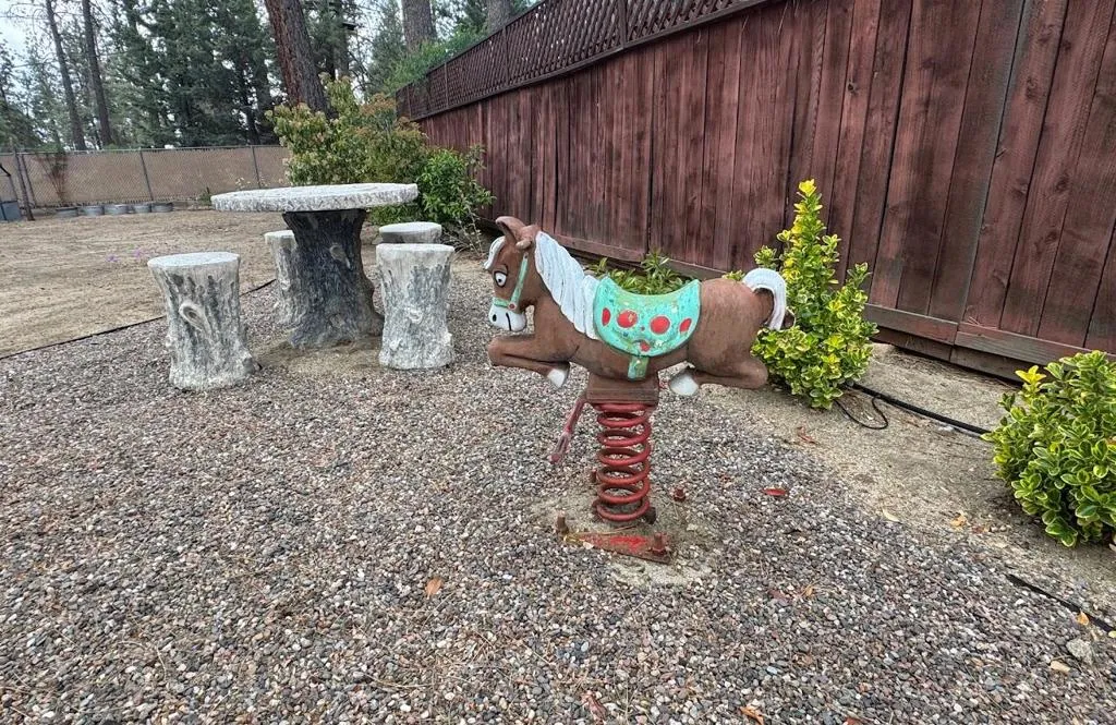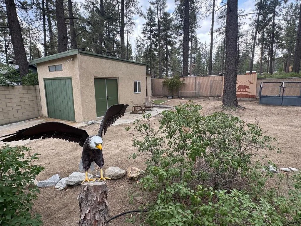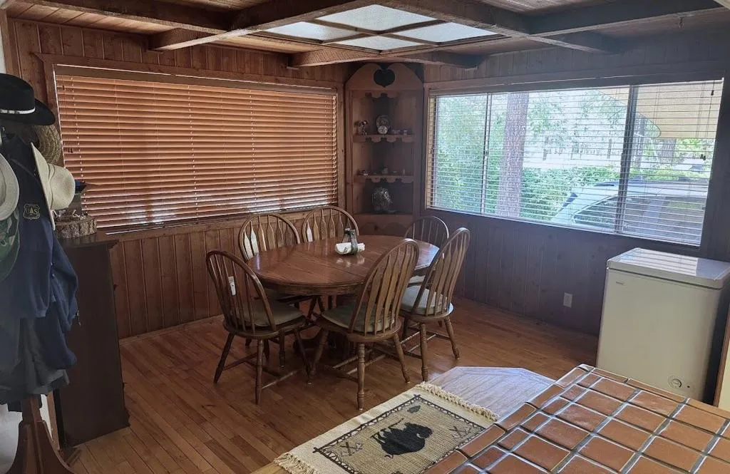 Don’t miss this wonderful opportunity to own a cozy and affordable home nestled in the scenic Thomas Mountain area of Garner Valley surrounded by towering pines and natural beauty. Step inside to find a spacious living room with warm wood floors, a wood stove and sliding doors leading to the covered deck ideal for relaxing or entertaining while enjoying the views of the beautiful large back yard. The kitchen features durable vinyl flooring, classic tile countertops, an induction cooktop with hood, wall oven, microwave, free standing freezer, and double sinkTwo generously sized bedrooms with wood floors and a full bathroom that includes dual sinks granite counters and a spa tub & stall shower. Other features include a laundry room w/washer and dryer and utility sink. Plenty of outdoor living space with the brick patio, wood deck and big pine trees. Also included are two storage rooms, one is a converted one car garage that can be converted back to a garage if desired or possible guest room possibilities with plumbing available.