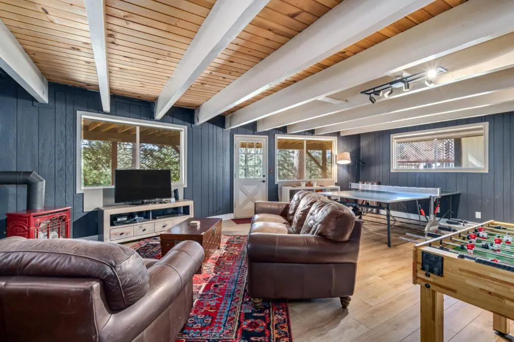 This is a hard to come by updated A-frame cabin with a tall floor to ceiling glass/windows wall and unobstructed mountain views. The home is fully updated and offers lots of space on 3-levels. All inspections are available! Large upstairs loft, 2 bedrooms on main level, bonus room downstairs and 3 full bathrooms (one on each level). Improvements include a remodeled kitchen, three updated bathrooms, energy efficient mini split systems for cooling and heat, dual pane windows, LVP flooring, new whole house generator, composite decking and more. Unlike many homes in the area, this one offers a large level driveway with plenty of parking for your guests and toys. RVs and boat will all fit here! Surrounded by tall pines the cabin is ready for full time personal use but is also a desirable weekend getaway short term rental AND most furnishings can stay. Enjoy all that Pine Mountain Lake has to offer – swimming, boating, fishing, hiking, bicycling, tennis &pickleball, stables, gun range, campground and an 18-hole championship golf course plus country club for your dining and entertainment pleasure. Groveland is about a 2.5hrs drive from many locations in SF Bay area or you can fly into Pine Mountain Lake airport in about 45mins! Yosemite National Park is just 25 miles up the road.