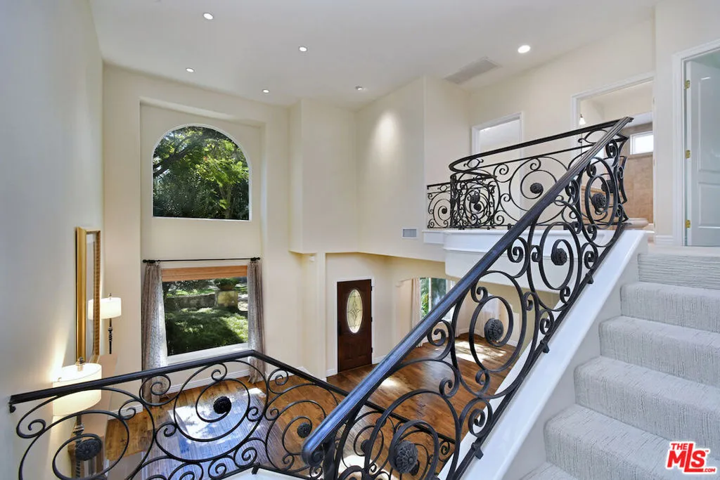 Located on a picturesque, tree-lined street in the heart of the coveted Silver Triangle, this custom-built newer home features an inviting gated courtyard and a detached guest house perfect as a home office or studio. Step inside to a thoughtfully designed floorplan with soaring ceilings and expansive picture windows that bring in natural light. Highlights include hardwood floors, an elegant living room with a mantled fireplace, and a separate formal dining room. The brand-new center island kitchen boasts built-in stainless steel appliances, including double ovens, refrigerator and a Wolf 5 burner gas range. A breakfast bar with seating for four opens to the family room, which features a second fireplace and French doors leading outside. The home offers a downstairs bedroom and full bath, plus three additional bedrooms upstairs. The spacious primary suite includes a luxurious bathroom with dual vanities, a spa tub, and a glass-enclosed shower. There is also a large walk-in closet and French doors opening to a private terrace with treetop views. The upstairs front bedroom also features a covered outdoor terrace. Professionally landscaped gardens surround the private backyard, complete with a BBQ island, fountain, and private entrance to the approximately 600 sq. ft. guest house/office with high ceilings and a bathroom. The finished two-car detached garage includes an EV charger. Additional features include three-zone high-efficiency central heating and air, a Control4 smart home system, new Nest thermostats, and an updated alarm system. Located south of the Boulevard, just moments from the best shops and restaurants Studio City has to offer. Carpenter School is right around the corner, and there is easy access to the city and major studios. A beautiful and unique property, move-in ready and waiting to welcome you home.