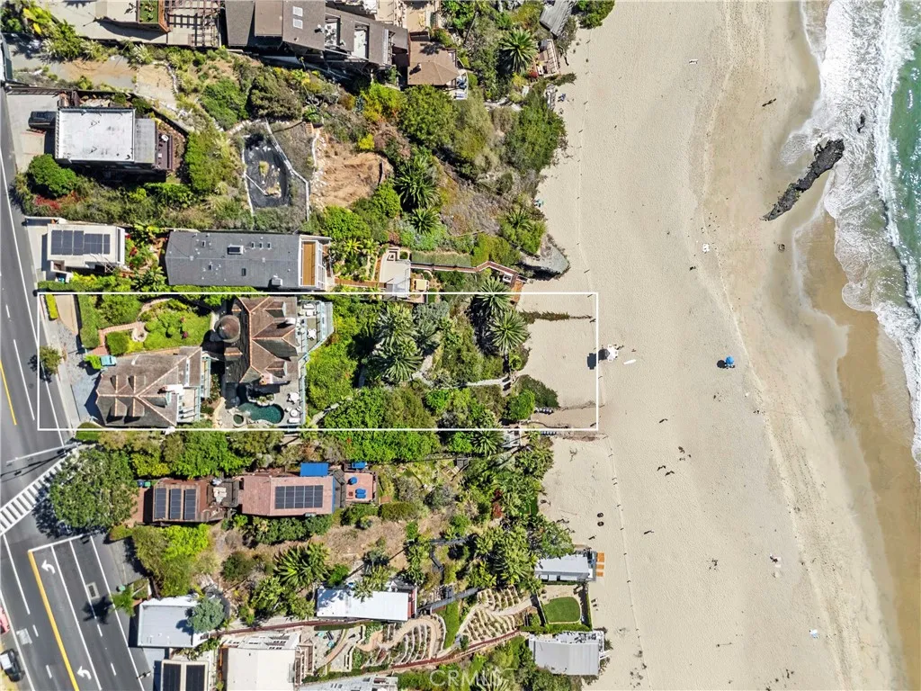 Perched above the Pacific Ocean, this rare Laguna Beach estate unfolds across more than half an acre, offering direct beach access with rare ownership of a portion of the sand, panoramic coastal views, and resort-style amenities. Designed to celebrate its dramatic oceanfront setting, the property blends timeless craftsmanship with whimsical architectural character and effortless California elegance across approximately 5,756 square feet of living space, featuring seven bedrooms and seven total bathrooms. The compound includes a stunning main home, poolside guest quarters, and a separate guest apartment. The main residence feels both grand and enchanting, with a stone turret, diamond-patterned windows, and a shingled roof that mirrors the rhythm of the waves below. Inside, stone floors, a sculptural floating staircase, and soaring beamed ceilings frame endless ocean vistas. The living room, anchored by an impressive double-height fireplace, opens to an oversized deck that appears to float above the water, while the formal dining room and vintage kitchen with a wet bar for entertaining invite gatherings that linger late into the evening. The primary suite offers a private ocean-view deck, fireplace, dual baths, and a walk-in closet—a serene retreat overlooking the sea, with panoramic coastal views, Catalina Island, sunsets, and sparkling night lights. Additional highlights include a loft-style office, expansive family room, and two main-level guest rooms. The poolside guest quarters feature ocean views, a fireplace, and an ensuite bath, while the separate approximately 1,485-square-foot guest residence showcases panoramic ocean vistas, high ceilings, abundant natural light, three bedrooms (two ensuite), a den, and ocean-view patios. Lush stone pathways meander through the grounds, connecting multiple terraces, a resort-style pool and spa, and the sandy shoreline of renowned Thousand Steps Beach. An oversized three-car garage and expansive motor court with a circular drive complete the property. This rare oceanfront compound, where craftsmanship and coastal magic converge, captures the very essence of Laguna Beach living. Ideally situated moments from fine and casual dining, art galleries, and the Montage Resort, it represents the pinnacle of coastal living.