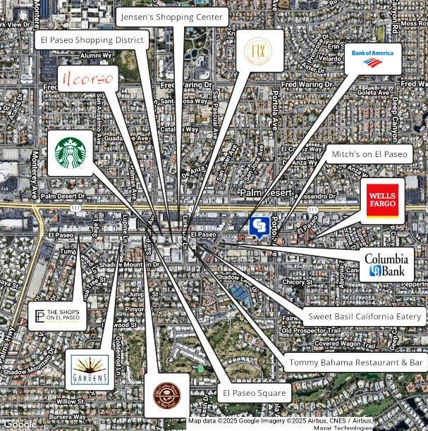 Location is known for its chic consignment stores, office spaces and specialty retail shops. Mitch’s Prime Seafood, Maison Felice, Phyllis Washington Antiques, Interior Illusions, and A Gallery Fine Art are close to this building.Great bargain space on El Paseo.2,400 SF of space that can be used for office or retail purposes. Current use is an art gallery.Abundant public parking behind the space with street parking in front.Excellent signage.