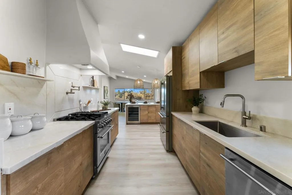 Stunning 5-Bedroom Canyon-View Retreat in Clairemont’s Coveted Mount Streets. Perched in one of Clairemont’s most sought-after neighborhoods, this fully renovated 5-bedroom home offers a rare blend of elegance, versatility, and breathtaking natural scenery. Designed for the discerning buyer, every detail of this renovation was crafted with quality and comfort in mind. Step inside and experience open-concept living at its finest, where the kitchen, dining, and living spaces flow seamlessly together, perfectly framing sweeping canyon views through expansive windows and sliding glass doors. The chef-inspired kitchen and bright dining area invite you to enjoy morning coffee or sunset sky dinners while taking in the serene canyon views that stretch to the trailheads below. With five full bedrooms, the home offers exceptional flexibility, ideal for large families, extended guest stays, or multi-generational living. One bedroom is perfectly positioned to double as a home office with an amazing view, providing an inspiring setting for remote work or creative pursuits. Outdoor living is effortless here. The open floor plan transitions naturally to the patio and backyard, creating the indoor-outdoor lifestyle San Diego is known for, perfect for entertaining or quiet evenings under the stars. Located in a quiet neighborhood, residents enjoy immediate access to premier hiking and biking trails right at the base of the canyon. Just a 3-minute drive to major shopping centers, restaurants, and convenient freeway access, and only 15 minutes from some of Southern California’s best beaches.