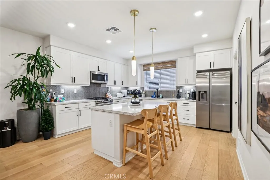 Contemporary style and comfort come together in this three-story townhouse, built in 2022 and perfectly situated within the gated Carson Landing community. The open-concept layout is bright and inviting, featuring wide-plank wood flooring, recessed lighting, and a seamless connection between the living, dining, and kitchen areas—ideal for both relaxing evenings and entertaining.