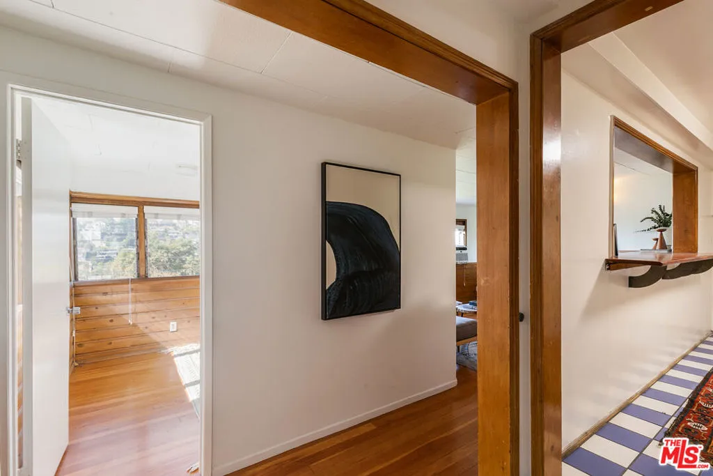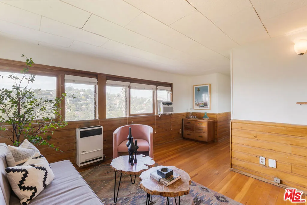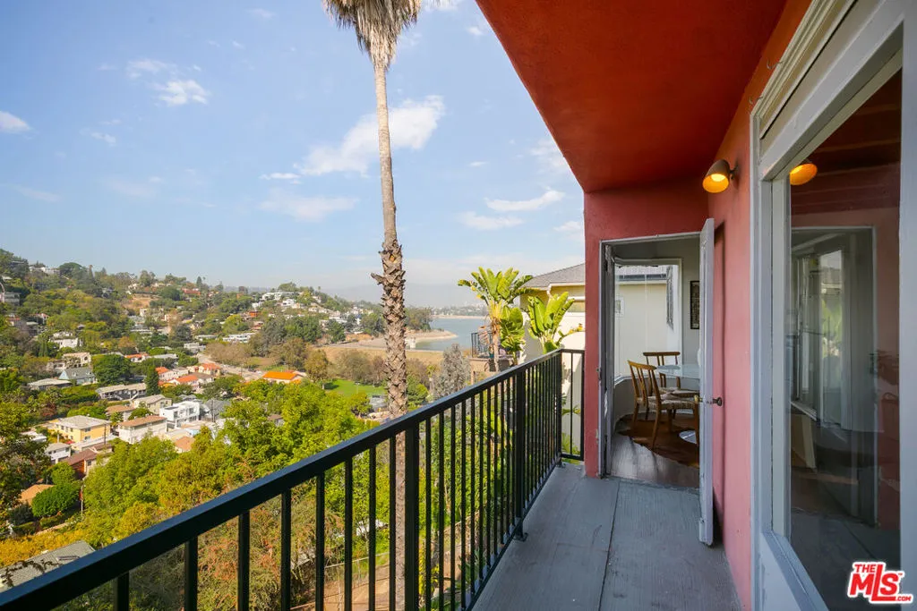 Perched in the hills of Silver Lake overlooking the shimmering reservoir, this mid-century modern duplex captures the very best of Los Angeles. The panoramic views are truly breathtaking, expansive, unobstructed, and impossible to replicate. Both units feature curved wood wall panels, built-in cabinetry, and corner windows that frame remarkable views, creating a timeless and inspiring atmosphere. Additional highlights include decorative fireplaces, exposed beam ceilings, checkerboard kitchen floors, decorative wood-paneled walls, and HVAC systems for year-round comfort. Unit 1805, the top-floor home, is a sun-filled 2-bedroom, 2-bath residence, while Unit 1803 spans two levels with direct access from the 2 car garage into the kitchen. A large balcony off Unit 1803 offers sweeping 180-degree vistas spanning Los Angeles and the Silver Lake Reservoir an extraordinary setting for morning coffee or evening gatherings. The lower level can be reached via an interior staircase and a separate exterior entrance and includes its own kitchen, bathroom, and incredible views. It shares the same mid-century character as the upper floor and is ideal for guests, a creative workspace, or potential conversion into a legal third unit for additional income (buyer to verify). Enjoy close proximity to the Silver Lake Reservoir, LAMILL Coffee, Botanica, and other neighborhood favorites all within one of Los Angeles’ most beloved enclaves. A rare find in an unbeatable location, this duplex offers remarkable flexibility, vintage charm, and sweeping views that define the very essence of Silver Lake living.