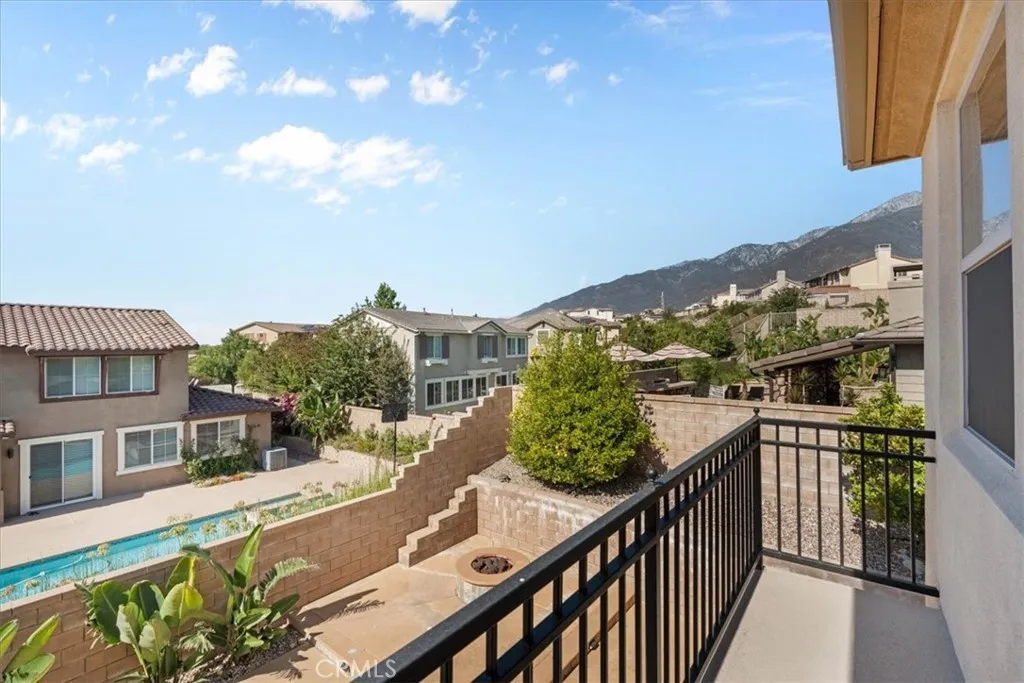 This home has everything you could desire — an amazing floor plan, breathtaking city and mountain views, and a beautiful pool and spa. Located in the private, gated community of Rancho Etiwanda Estates, this two-story home features a spacious foyer, guest bath, living room, and formal dining room. The kitchen offers an island with bar seating, a walk-in pantry, and opens to the family room, breakfast nook, and laundry room, which leads into the 3-car tandem garage. The lower level also includes a second staircase to the upper level and a bedroom with its own private bath, ideal for guests or multigenerational living. Upstairs, you’ll find a loft area perfect for a game room, three additional bedrooms each with their own bath, a workspace, and a luxurious primary suite. The primary suite features a sitting area with a fireplace, access to a private balcony, and a spa-like bath with dual vanities, a makeup counter, separate shower and tub, and two walk-in closets. Additional highlights include a porte-cochere leading to the courtyard, extra driveway parking, professional landscaping, a gas firepit, outdoor BBQ island, covered patio area, an in-ground pool with a baja shelf and pebble-tec finish, and an in-ground spa with a waterfall. Located in an award-winning school district and close to major shopping, dining, and entertainment — including Victoria Gardens, Ontario International Airport, and Toyota Arena. Every moment you wait, someone else could take your opportunity.