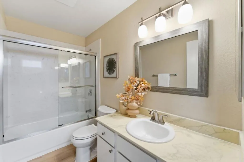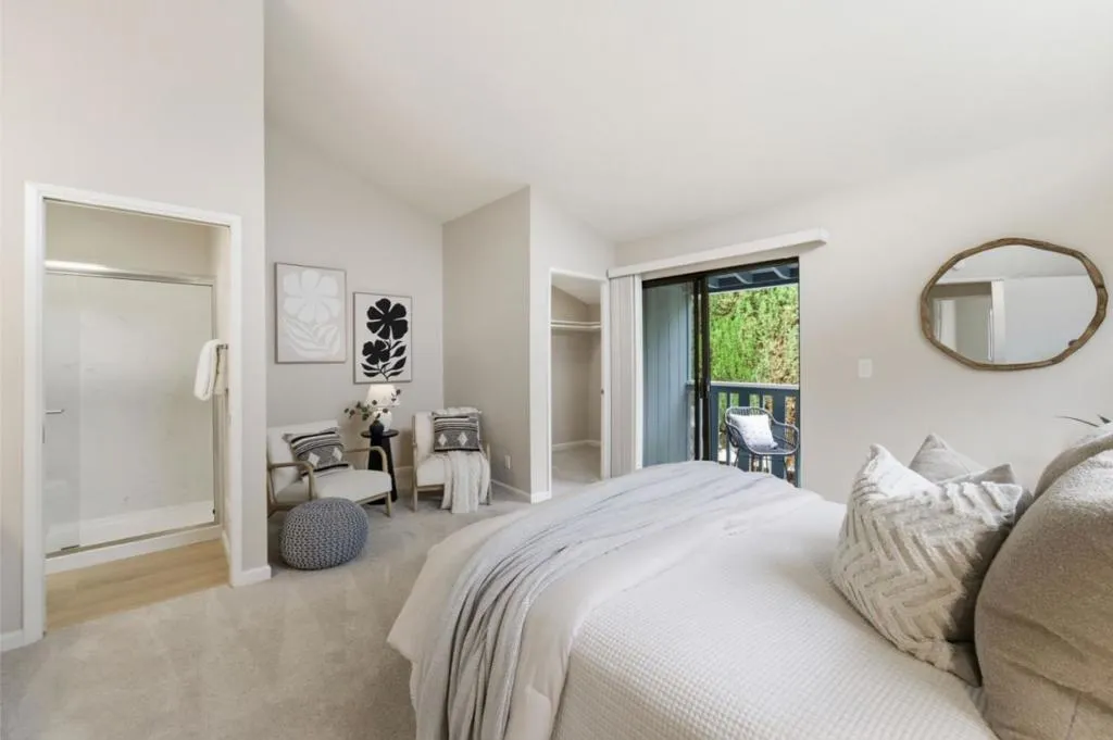Spacious 2-story townhome in a desirable area of Santa Clara. The home has been renovated to includes an updated kitchen, stainless steel appliances, new flooring, fresh paint, and updated bathrooms with a new shower and tub. The home is highlighted by its natural features which include a vaulted wood beamed ceilings, central air conditioning, wood burning fireplace, and an oversized 2 car garage. The large master suite includes a walk-in closet and balcony. The home has also undergone a newer electrical panel, roof, and heater/air conditioner. The relaxing low maintenance backyard includes a nice patio with grass and large cypress trees to provide privacy. The home is close to restaurants, banks, and grocery stores along with Santa Clara’s Central Park, Apple, kaiser, and other major tech companies. The complex has a low hoa fee and is well maintained with newer exterior paint and a nice driveway but also has guest parking, a pool, a hot tub, and a private entrance to Homeridge Park.