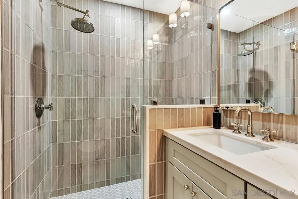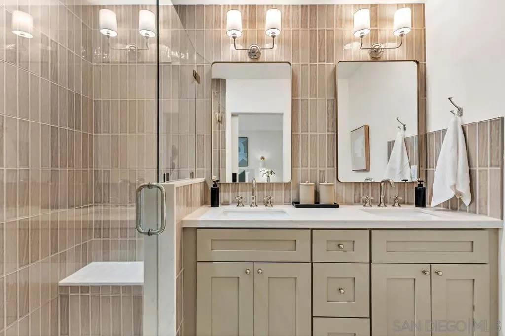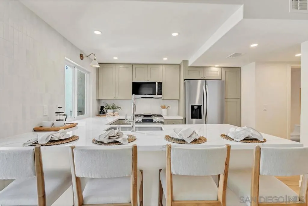 Live the coastal dream in this stunningly renovated 3-bed, 2.5-bath townhome. Tucked away west of the 5 in the desirable Del Mar Downs community, this residence is the perfect blend of modern luxury and beachside living. Step inside to a home completely transformed with high-end finishes, including White Oak engineered floors, new cabinetry, and Quartz counters. The redesigned kitchen features premium stainless-steel appliances and a gas cooktop with a griddle. Other upgrades include beautifully renovated bathrooms, updated plumbing, polished nickel hardware, and designer lighting. The primary bedroom is a serene sanctuary with a walk-in closet and a spa-like en-suite bath with dual sinks. From the secondary bedrooms, step out onto a private balcony for views of the community greenbelt and the Del Mar Racetrack. A new fireplace surround adds a stylish touch to the living room, while the private patio with a fire pit is ideal for enjoying the ocean air. The property includes a one-car garage with storage and a second assigned parking spot. Enjoy resort-style living with a community pool. You’re just moments from the Del Mar Racetrack, Cedros Avenue’s cultural hub, Annie’s Canyon Trail, Fletcher Cove, Tide Beach, Entertainment, Fine Dining and Nightlife to complete this coastal lifestyle.