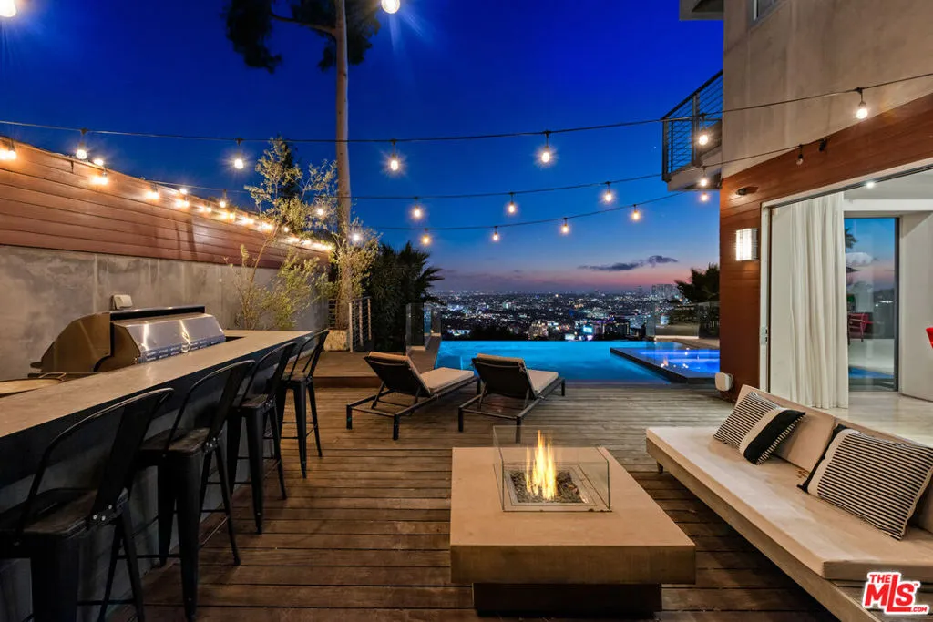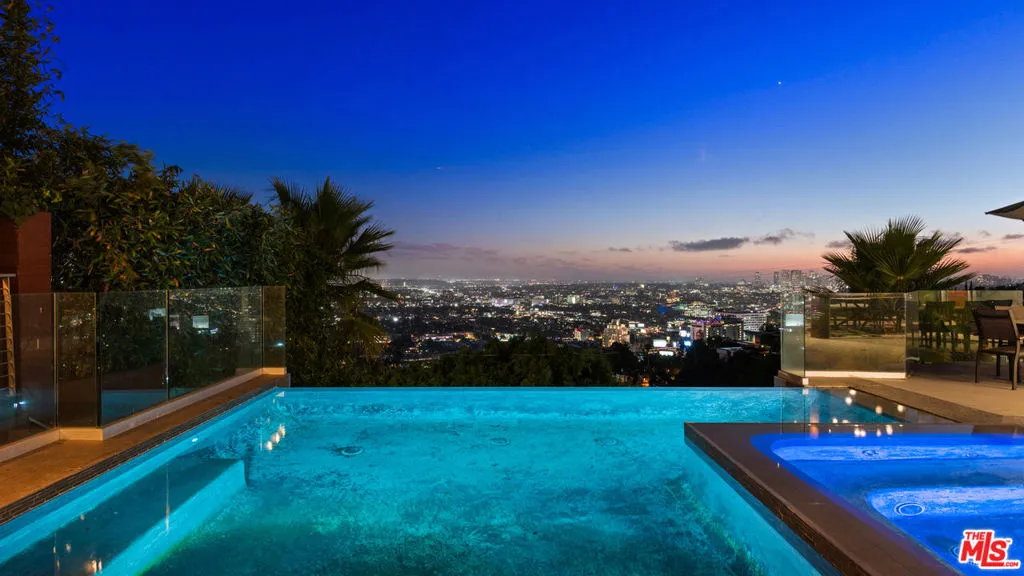 A Hollywood Hills Masterpiece with Unrivaled Views and Unmatched Luxury. Designed by Irving Philips, this architectural gem is perched on a private cul-de-sac above the iconic Chateau Marmont, offering sweeping vistas from Downtown LA to the Pacific Ocean. Seamlessly blending modern design with the natural beauty of its surroundings, this residence epitomizes California indoor-outdoor living with retractable doors, expansive terraces, and a stunning infinity-edge pool, where stunningsunsets are yours every evening from arguably the best seat in the Hills.The main level features an open-concept layout, ideal for entertaining, with a sleek outdoor kitchen,meticulously landscaped grounds, and a waterfall focal point. Upstairs, the luxurious primary suite occupies the entire top floor, complete with a captivating private balcony,spa-like bathroom, and panoramic views that redefine tranquility. Two additional en-suite bedrooms provide privacy and comfort for family or guests. State-of-the-art amenities include an iPad-controlled Smart Home system, Nest climate control, and comprehensive security. Designed for relaxation and entertainment, this property embodies Hollywood Hills glamour with every conceivable amenity at your fingertips.