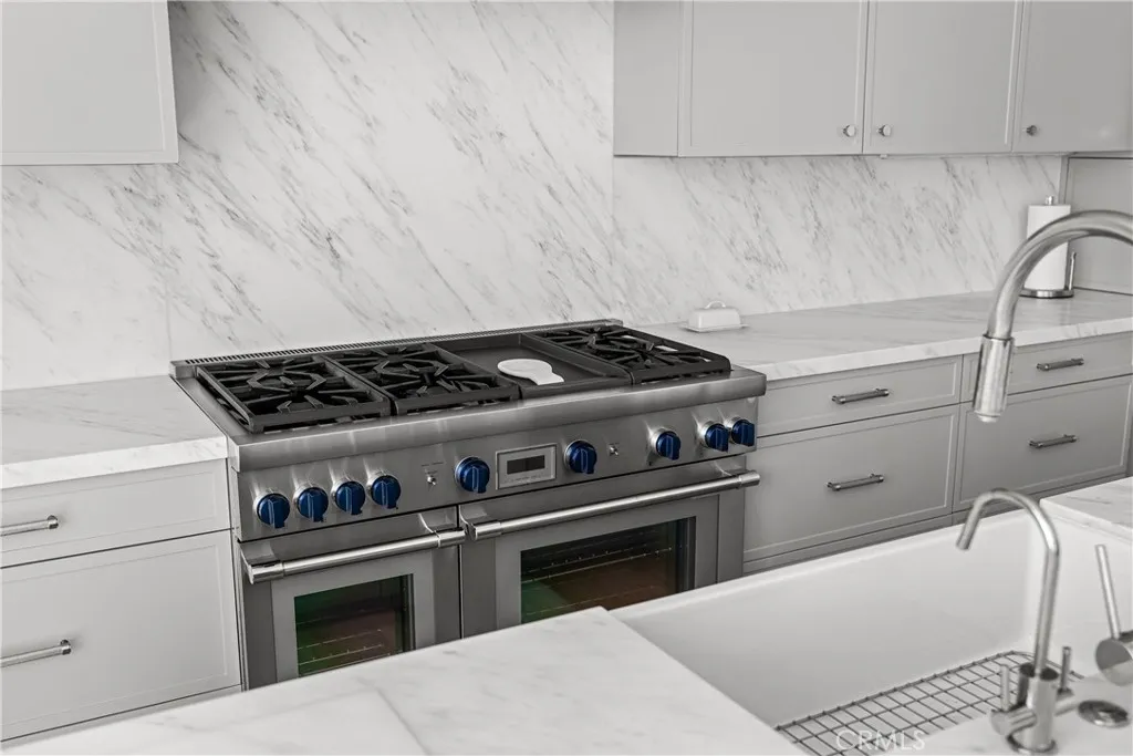 Step through the sliding doors and into a spacious living area, complete with a cozy fireplace and plush sectional—perfect for unwinding. The state-of-the-art gourmet kitchen is fully equipped for culinary adventures, complemented by a casual dining island seating six and additional alfresco dining for four.