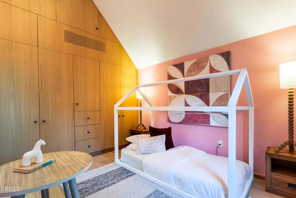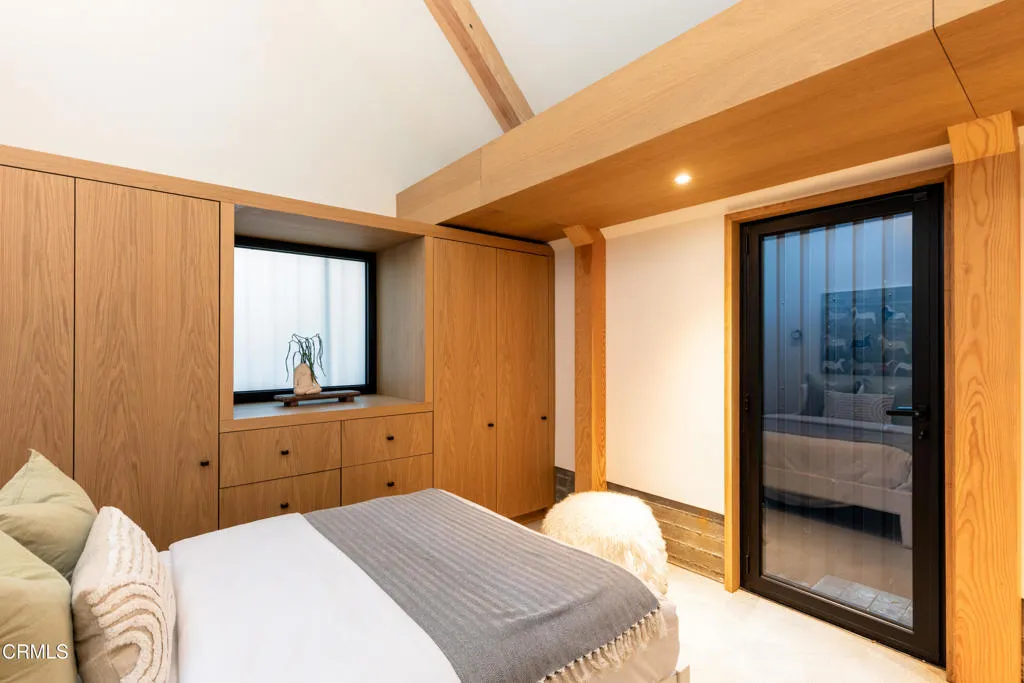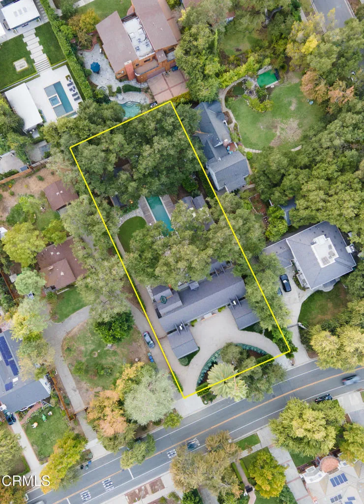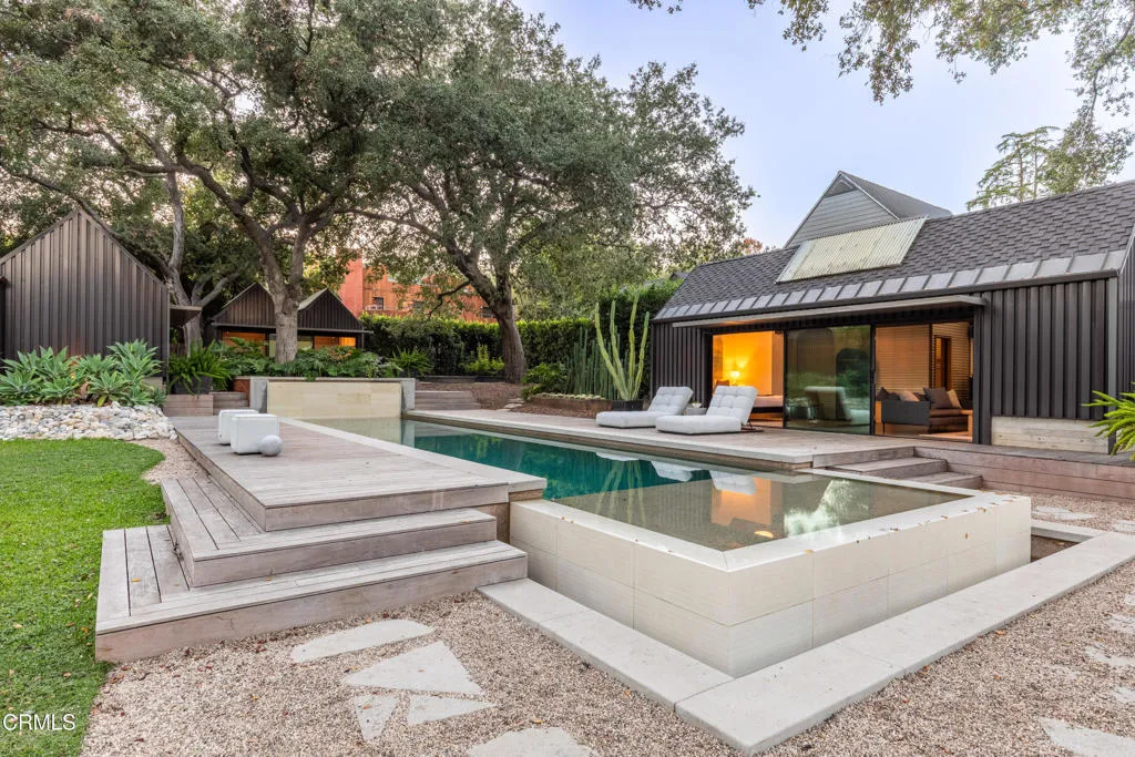 Stunning and newly constructed in 2021, this extraordinary Pasadena compound is thoughtfully nestled on over half an acre within a grove of majestic California oak trees in the beautiful Linda Vista neighborhood above the iconic Rose Bowl. Designed with great sensitivity to its natural surroundings, the residence blends a striking yet harmonious palette of concrete, steel, glass, and wood. Expansive angled gables, grand scale, and restrained details create an aesthetic that feels both modern and timeless–embracing the serenity of the landscape and the enduring character of California architecture.The heart of the home is the warm and inviting kitchen, outfitted with custom-milled cabinetry, chef’s-grade appliances, and refined finishes. Sliding glass doors open directly to an outdoor dining patio and fireplace, a seamless connection between indoor and outdoor living. The main living area is defined by vaulted ceilings, walls of glass, and a fluid layout that blurs the boundaries between architecture and nature, filling the space with light and tranquility.The first-floor primary suite serves as a private retreat, featuring a luxurious, paneled dressing room and spa-like bath. A guest suite and private den or library complete the main level, while a sculptural, wood-shelved staircase ascends to two additional bedrooms–each with its own balcony and a shared bath. The lower level is dedicated to entertainment and leisure, offering a grand media and play space anchored by a dramatic fireplace. Outdoors, the estate unfolds around a large east-west swimming pool and spa framed by two magnificent specimen oaks. Surrounding the pool, three complementary structures–a guest house, an office or studio building, and a pool bath house–mirror the main residence’s elegant double-gable design and soaring ceilings. A motor court, flanked by dual two-car garages, provides both convenience and a sense of stately arrival.This masterfully crafted property embodies the rare synthesis of architectural innovation, natural beauty, and timeless California living–an inspired retreat where design and environment exist in perfect harmony.