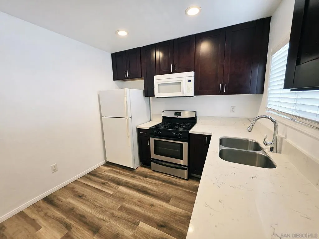 Freshly painted 2 BR / 2 BA house in 92115. This two level unit offers 2 gated off street parking spaces, in unit washer & dryer, vinyl flooring throughout. Quartz countertops in kitchen. Large storage closet. Close to all that mid-city has to offer – Copley Price YMCA, restaurants, bars & freeways.