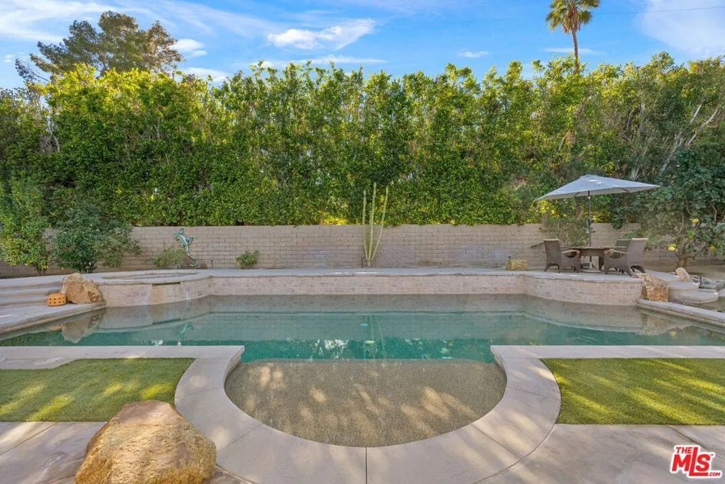 Rare find available for the entire Winter Season Jan 2026 to April 2026! Just five blocks from El Paseo, this stylishly furnished and freshly remodeled 3-bed, 2-bath home offers over 1,800 sq. ft. of open living space, with so much room for entertainment! A circular driveway leads to a welcoming front courtyard with fireplace and lounge seating. Inside, the light-filled open floor plan features a chef’s kitchen with large island, high-end stainless steel appliances, wine fridge, and abundant cabinetry. Step outside to your private desert oasis surrounded by lush tropical landscaping and Santa Rosa Mountain views… the oversized pool with raised spa and waterfall is ideal for relaxing or entertaining, complemented by a Tiki-bar outdoor kitchen, built-in BBQ, cozy fire-pit lounge, covered hammock area, and outdoor shower. Additional highlights include a paid solar system and attached two-car garage. Ideally situated in the sought-after El Paseo neighborhood, minutes from world-class golf, fine dining, and boutique shopping. What a fun way to spend the winter. Listed price is for 12 month lease. Shorter stays available – prices vary by month/season. Please contact LA1 for pricing.