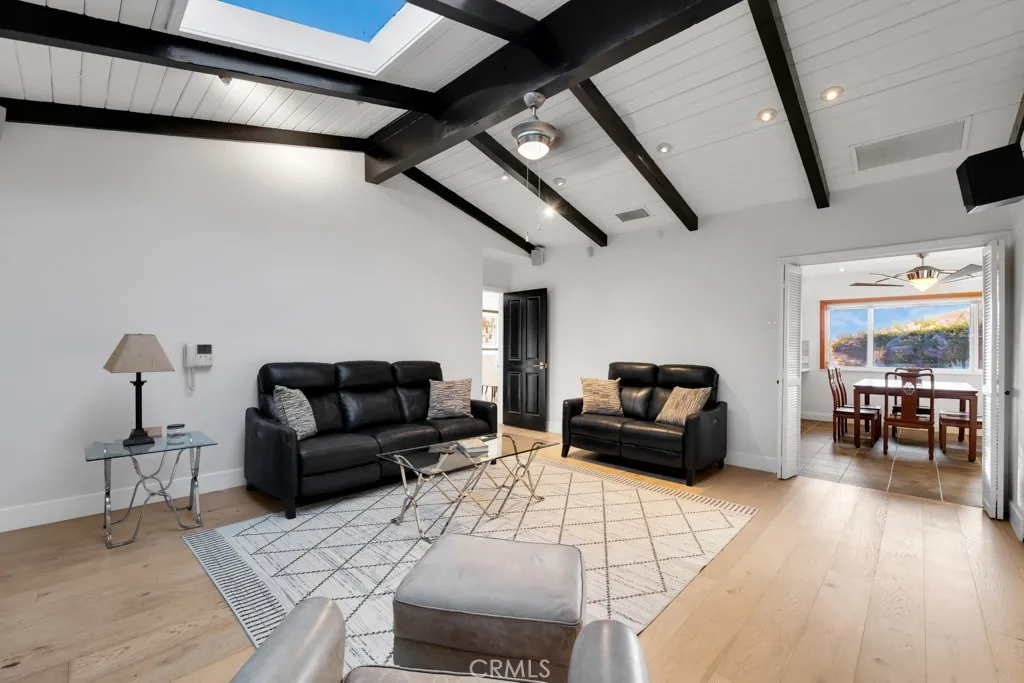 Prepare to fall in love with this incredible home! The large concrete driveway accommodates 6+ cars, providing ample parking. Upon entering through the modern double doors, you’ll be greeted by gorgeous hardwood floors, recessed lighting, and designer touches throughout. The spacious living room boasts a beautiful fireplace adorned with a striking ebony Roman clay finish. This home is designed for seamless indoor/outdoor living, with all bedrooms, the living room, and the family room offering direct access to the backyard. The kitchen features slate tile floors, cherry cabinets, quartz countertops, and high-end stainless steel appliances, including Thermador and Bosch, as well as a wine fridge. Adjacent to the kitchen is the family room, which showcases vaulted ceilings, a skylight, and French doors leading to a tropical paradise in the backyard. The expansive master suite includes a large bathroom with a dual-sink custom vanity, slate tile, a massive spa tub, and direct access to the pool area. The master bedroom features an impressive 8’x28′ closet, ensuring ample space for even the largest shoe collection, along with crown moldings and a stylish accent wall. One of the bedrooms has been converted into a home office equipped with built-in desks and bookshelves, while the other two bedrooms are spacious and share a newly remodeled Jack and Jill bathroom. All bedrooms come with ceiling fans for added comfort. The backyard is an entertainer’s paradise, boasting a tiki theme that will make every day feel like a vacation. Enjoy the sparkling pool and spa, a built-in Viking BBQ, a generous patio area, lush vegetation, and a tiki bar overlooking the pool. Take in the stunning sunsets from the larger of two maintenance-free synthetic wood decks, or escape to the smaller deck hidden among the trees. Additional highlights include a convenient 3/4 bath off the pool, a large laundry room (with newer washer and dryer included), landscape lighting in both the front and back, a 2-car attached garage with a frosted glass door, and an EV charger. All of this in the incredibly desirable neighborhood of Lynn Ranch with only a $200/year VOLUNTARY HOA.