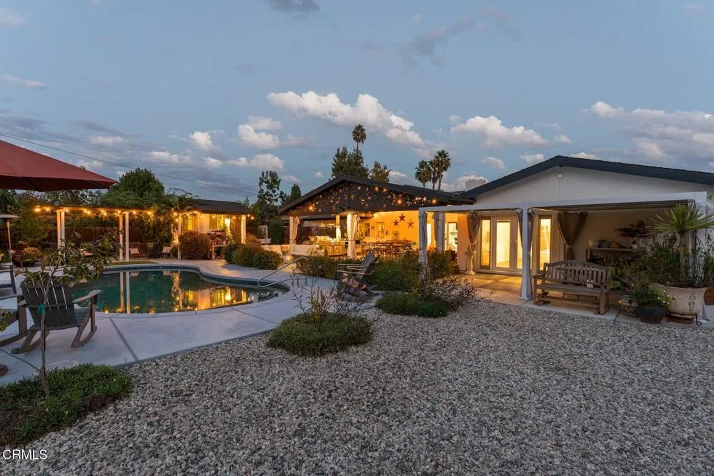 💎The Crown Jewel of Waverly Heights! 💎This completely remodeled, single -story pool home is set on an immense flat lot and offers over 2,600 square feet of refined living space with six bedrooms, five bathrooms, and dual RV accesses. The striking curb appeal features a half-circle driveway, updated fencing, manicured artificial turf, and a welcoming front patio with fire pit. Inside, real wood flooring leads to an open and bright layout centered around a stunning chef’s kitchen with stone countertops, soft-close shaker cabinetry, farmhouse sink, subway-tile backsplash, and stainless steel KitchenAid appliances including a five-burner gas range. The spacious family room features a brick fireplace and large sliding doors to the backyard. Two private wings each include a primary suite, hall bath, and two secondary bedrooms, offering the perfect setup for multi-generational living or guests. The new south-wing primary suite is exceptional with vaulted ceilings, French doors to a private patio, a luxurious bathroom with dual quartzite vanities, soaking tub, stone-tiled shower, and custom walk-in closet.Nearly $100,000 worth of upgrades include a new HVAC system and tankless water heater, smart water monitor and quake shutoff valve, new drainage and irrigation systems, electrical and structural enhancements, and a Vivint security system. The backyard is a true retreat with a massive covered patio, built-in BBQ with stainless appliances and farmhouse sink, a pebble-surfaced pool, a private outdoor bath house with vaulted ceilings and full shower, and expansive grounds with room for an ADU / Guest House or sport court. Both side yards offer RV access, one with a paved pad and sewer hookup. Ideally located near Wildwood Park’s hiking and biking trails, playgrounds, and convenient freeway access, this home is the definition of turnkey Thousand Oaks luxury.