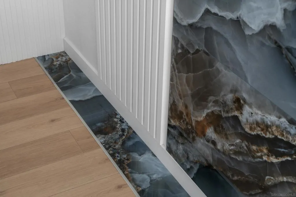 Welcome to “Ocean & Sand” Designer Home with One-of-a-Kind European Luxury Remodel. This single-story residence in a prime Del Mar highlands location is not a typical home. It is thoughtfully curated designer’s residence fully renovated with style and intention. Lives like a single-family home, no neighbors behind and to the left. High vaulted ceilings in the living room and bedrooms. Two spacious primary suites, each with its own full bathroom. Hand picked luxury tile from Spain & Italy. Open concept kitchen with a European style cabinets, modern quartz countertop, dramatic stone waterfall and backsplash. Kitchen offers built in stove, oven, microwave, dishwasher and ambient under cabinet lightning. The dining room is a showstopper with floor to ceiling porcelain tile accent wall. Unique kitchen and living room custom tile-to-laminate edge design. Living room area features gas fireplace with floor to ceiling porcelain tile and a custom design TV wall. New Roof replaced (2025), newer furnace (2023). The Pinterest looking Spa-Like bathrooms All Tile design. Both have custom shower systems, double floating vanities, ambient lighting, LED mirrors, and a smart toilet with integrated bidet functions. Two-car garage has epoxy flooring, laundry space located inside the home. Perfect size courtyard and private backyard. The community offers pool and spa. Walking distance to One Paseo, Del Mar Highlands Plaza, Sky Deck, shops, cafés, top-rated restaurants and Solana Highlands Elementary School. The beach is 10-min drive.