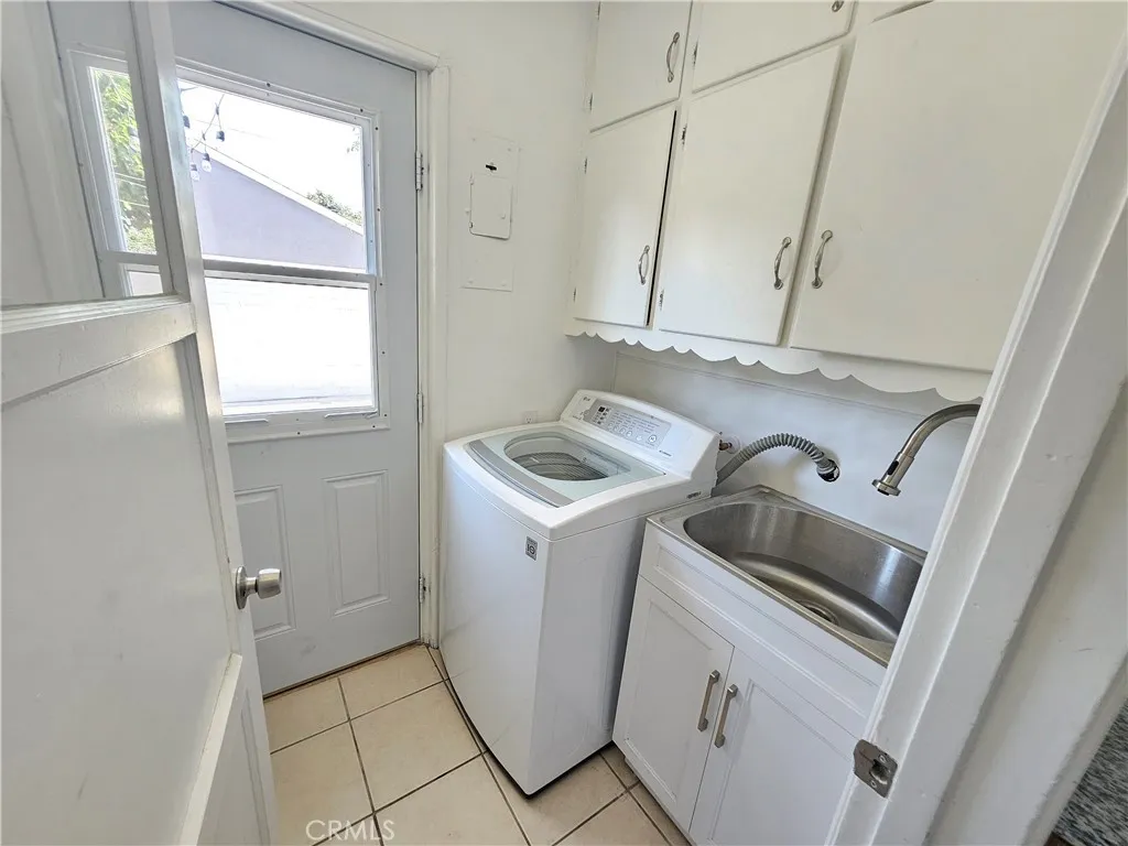 Bright sunny Updated mid century modern home with remodeled kitchen and bath, gleaming hardwood floors and newer stove, range hood , washer and dryer in inside laundry room. Fireplace in the living room, built in cabinets and window seat in the dining room built in closets and drawers in the bedrooms. 2 car detached garage, with long drieway, extra parking space in front and large block wall fenced back yard with huge shade tree. Light neutral interior ready for a new tenant.