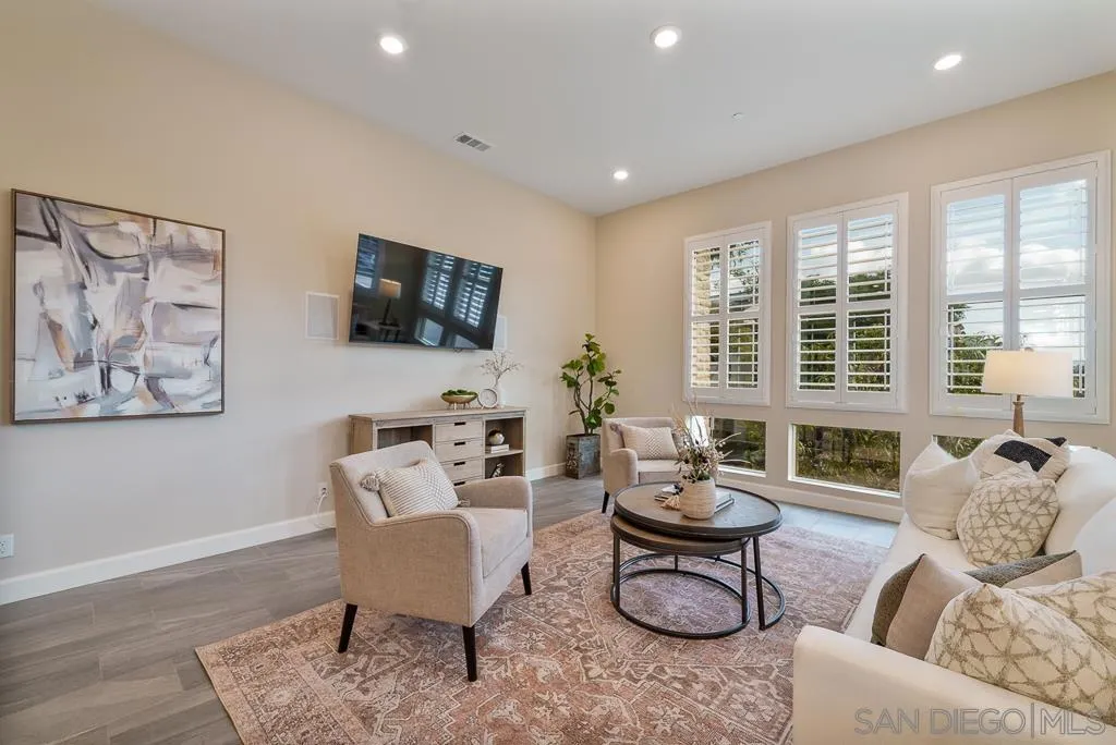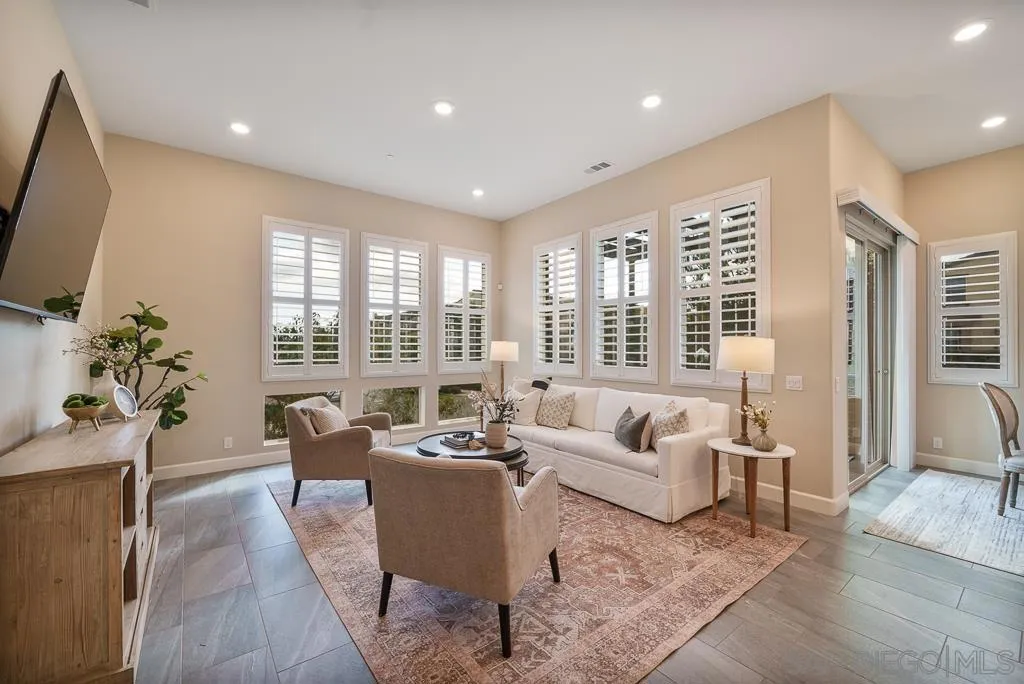EXTERIOR DUAL MASTER Plan 3 Avante 55+ home with EXPANDED GARAGE and phenomenal location! Enjoy over 30K in pre-closing flooring upgrades in this 2018 build, including Celestial plank tile & Welbeck maple wood. Smoke shaker cabinetry with chrome pulls, quartz counters, soft-close drawers, accessible beige walls, wood shutters, & Moen chrome plumbing fixtures throughout. Private in-home elevator and grab bars in bathrooms & showers for aging in place convenience. Dual master bedrooms feature crown molding,… walk in closets, and en suite bathrooms with Arizona Denali white quartz counters and glass enclosed showers with Esmer tile backsplash. Kitchen boasts Tullamore quartz counters, Stainless steel G.E. appliances, & glass cabinet display doors. Enjoy an open air balcony with sliding door access from the dining room. Newly painted exterior and front door. Smart home features include keyless entry app based lock, smart thermostat, smart lighting, and upgraded wifi connectivity throughout. Avante offers all of the bells and whistles of Del Sur, with added Avante amenities: private clubhouse, gym, pool, spa, barbecue areas, fire pit, and a full social event calendar. Walkable to the Del Sur Town Center. Lowest price per square foot in Del Sur for sale! Incredible opportunity to enjoy the amazing Avante & Del Sur lifestyle.