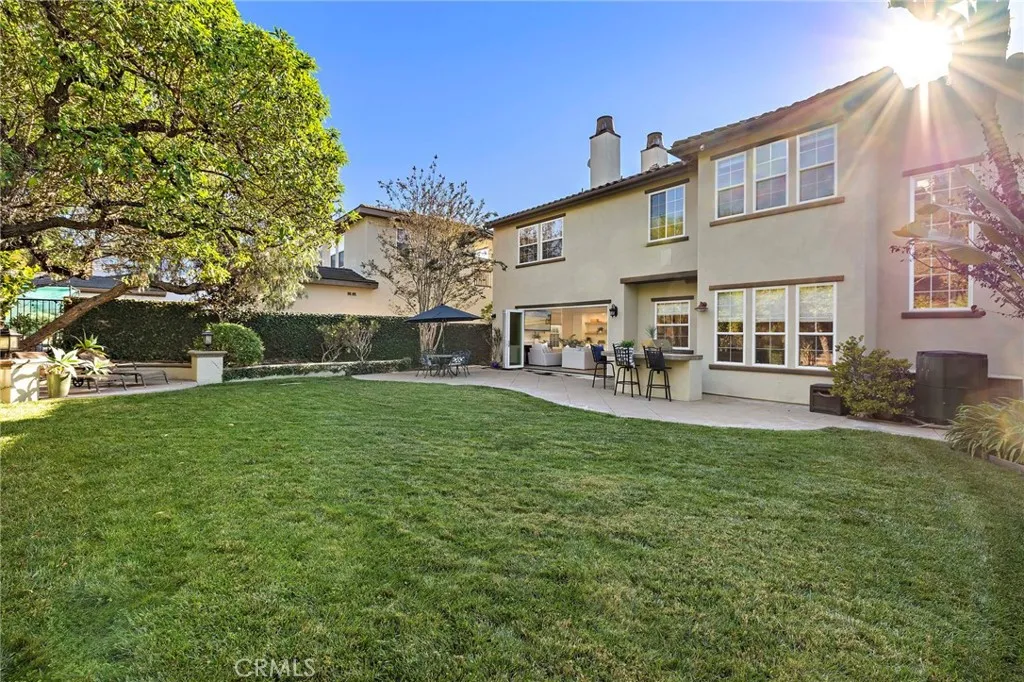 Welcome to 16 Wyndham Street, an exceptional residence nestled in the heart of Ladera Ranch. This beautifully remodeled Wyeth Plan 3 showcases expansive, thoughtfully designed interiors with 5 bedrooms — including a main floor ensuite — plus a versatile loft and bonus room, offering the perfect blend of comfort, functionality, and elevated style. Freshly painted inside and out, the home showcases engineered wood flooring, designer lighting, and custom window treatments throughout. The stunning chef’s kitchen is a showstopper with luxurious Cambria quartz countertops, an expansive center island, custom soft-close cabinetry, and premium stainless steel appliances including a Sub-Zero refrigerator. The adjacent breakfast nook features a built-in wine fridge, illuminated display shelving, and custom wine bar cabinetry. The open-concept great room includes a custom fireplace mantle, built-in cabinetry with lighted shelving, wainscoting, and dramatic 15-foot bifold doors that seamlessly connect to the oversized backyard — perfect for indoor-outdoor entertaining. Upstairs, a private staircase leads to the luxurious primary suite with dual sinks, vanity, two walk-in closets, and generous linen cabinetry. A second staircase brings you to the spacious secondary bedrooms and a well-sized loft. Additional upgrades include fully paid solar panels, PEX repipe, whole-house water filtration, and new custom wood garage doors. The main floor laundry room features a utility sink and built-in cabinetry. The expansive backyard is a private oasis with mature landscaping, a built-in BBQ, and an outdoor dining area. Enjoy close proximity to award-winning schools and the resort-style Oak Knoll Clubhouse, with pools, splash pad, and access to Ladera Ranch’s numerous parks, trails, and amenities. This remarkable home offers a rare opportunity to enjoy refined living in one of Ladera Ranch’s most sought-after neighborhoods.